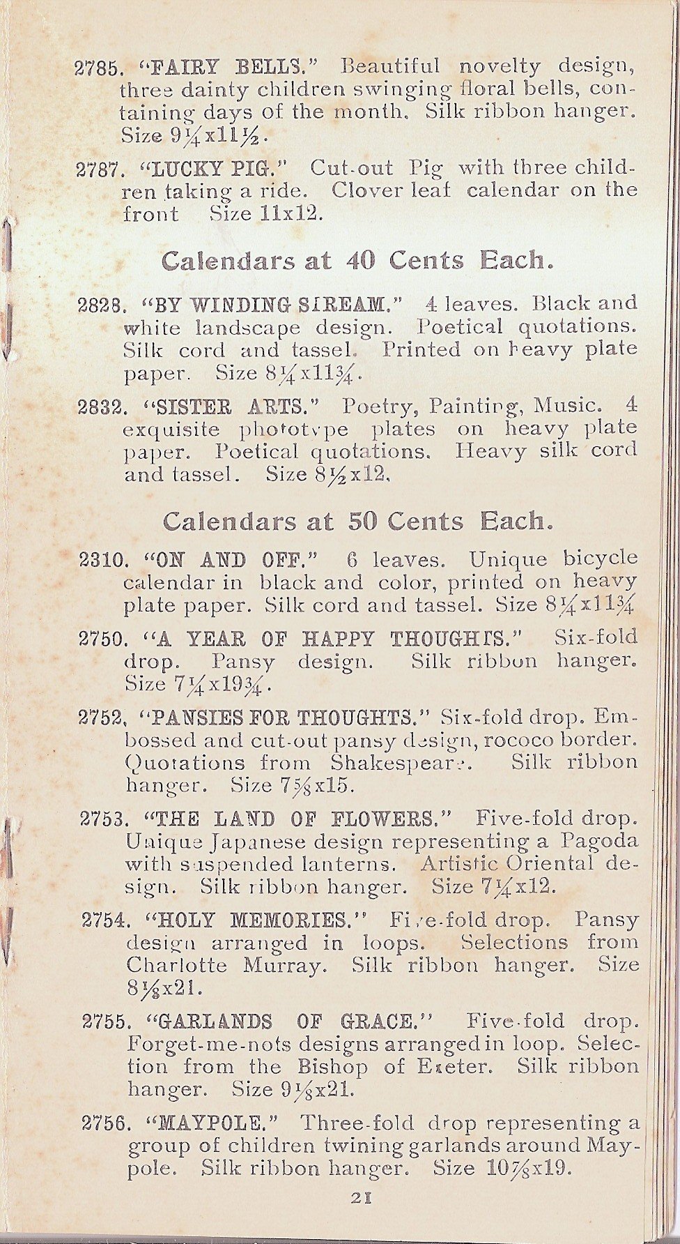 CALENDARS AT 40 CENTS EACH - CALENDARS AT 50 CENTS EACH