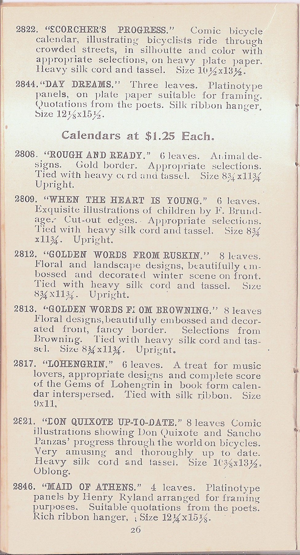 SCORCHER'S PROGRESS - DAY DREAMS - ROUGH AND READY - WHEN THE HEART IS YOUNG - GOLDEN WORDS FROM RUSKIN - GOLDEN WORDS FROM BROWNING - LOHENGRIN - DON QUIXOTE UP TO DATE - MAID OF ATHENS