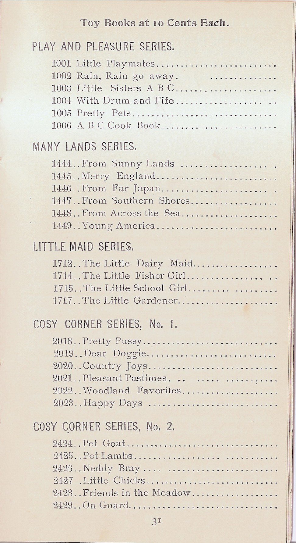 PLAY AND PLEASURE SERIES - MANY LANDS SERIES - LITTLE MAID SERIES - COSY CORNER SERIES - COSY CORNER SERIES