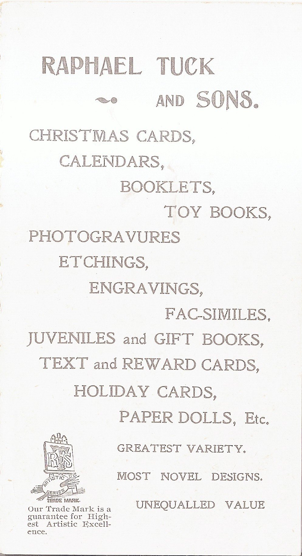 RAPHAEL TUCK & SONS COMPANY'S HOLIDAY PUBLICATIONS FOR SEASON 1900 - 1901