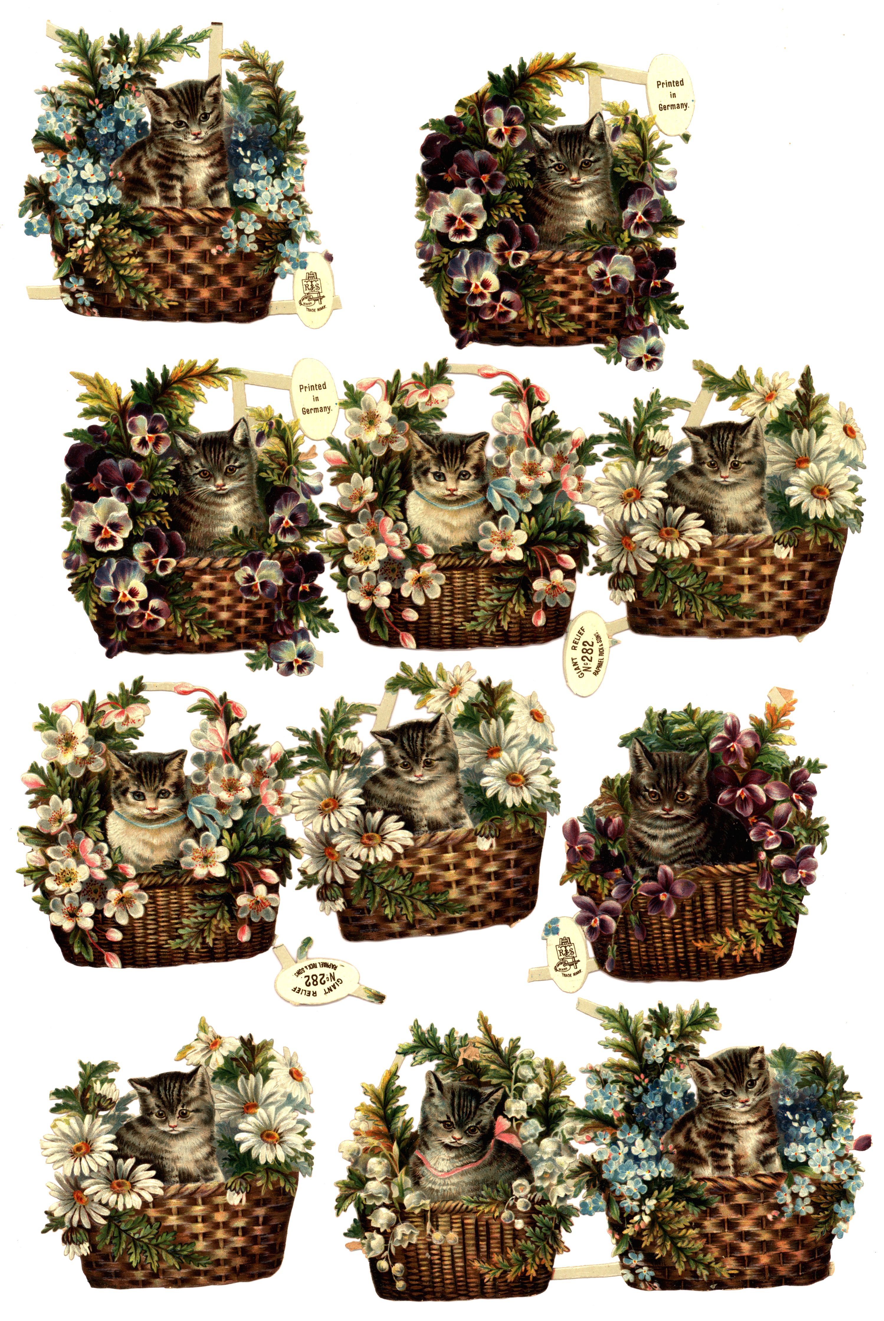 cats and flowers in wicker baskets