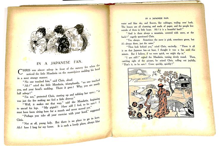 first story is THE LADY IN THE RED PETTICOAT colour plate is WAITING THEIR TURN pictorial board front cover with advert for other GOLDEN GIFT series books on the back cover