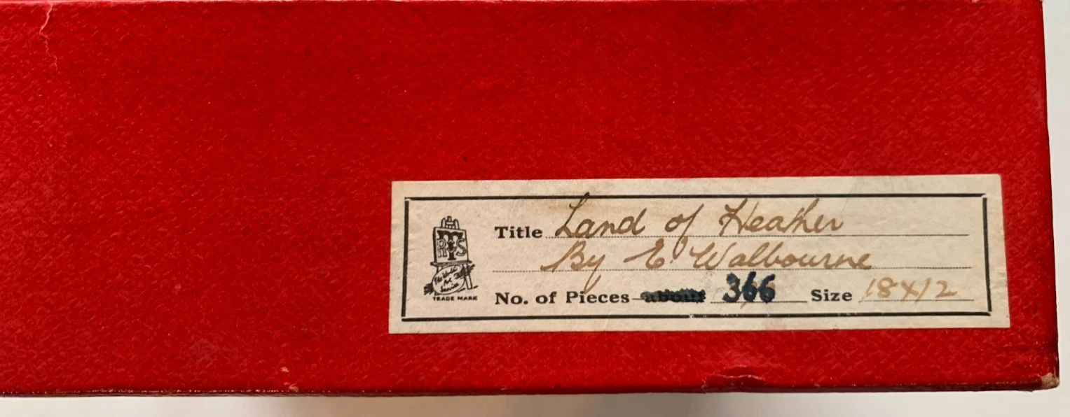 Zag-Zaw line of puzzles was first produced in 1909, most incorporate figurals or whimsies, sold in red, orange, or occasionally green boxes with labels on the side or bottom of the box, most without guide pictures. Initially cut non-interlocking but by 1930's became more so. Puzzles have a different cuts so that the same image will come in several versions which means that missing pieces can not be taken from other puzzles with the same image. The puzzle labels are often hand written and come with minor variations in titles and details. Some have a DESIGN category on the label. From my readings this refers to the style of cut, wavy lines, figurals, etc. See also Bob Armstrong's website on old jigsaw puzzles