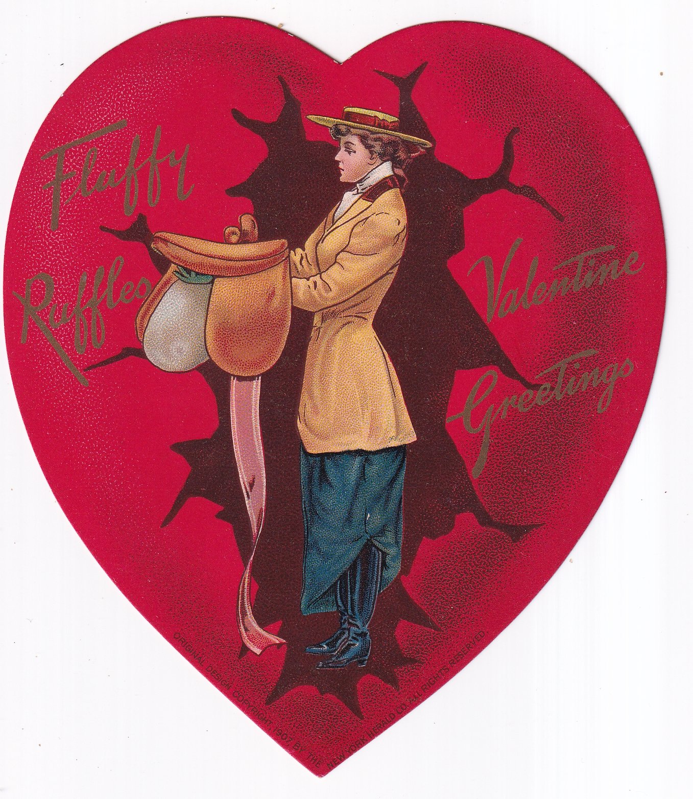 VALENTINE GREETINGS, woman in riding clothes holds saddle