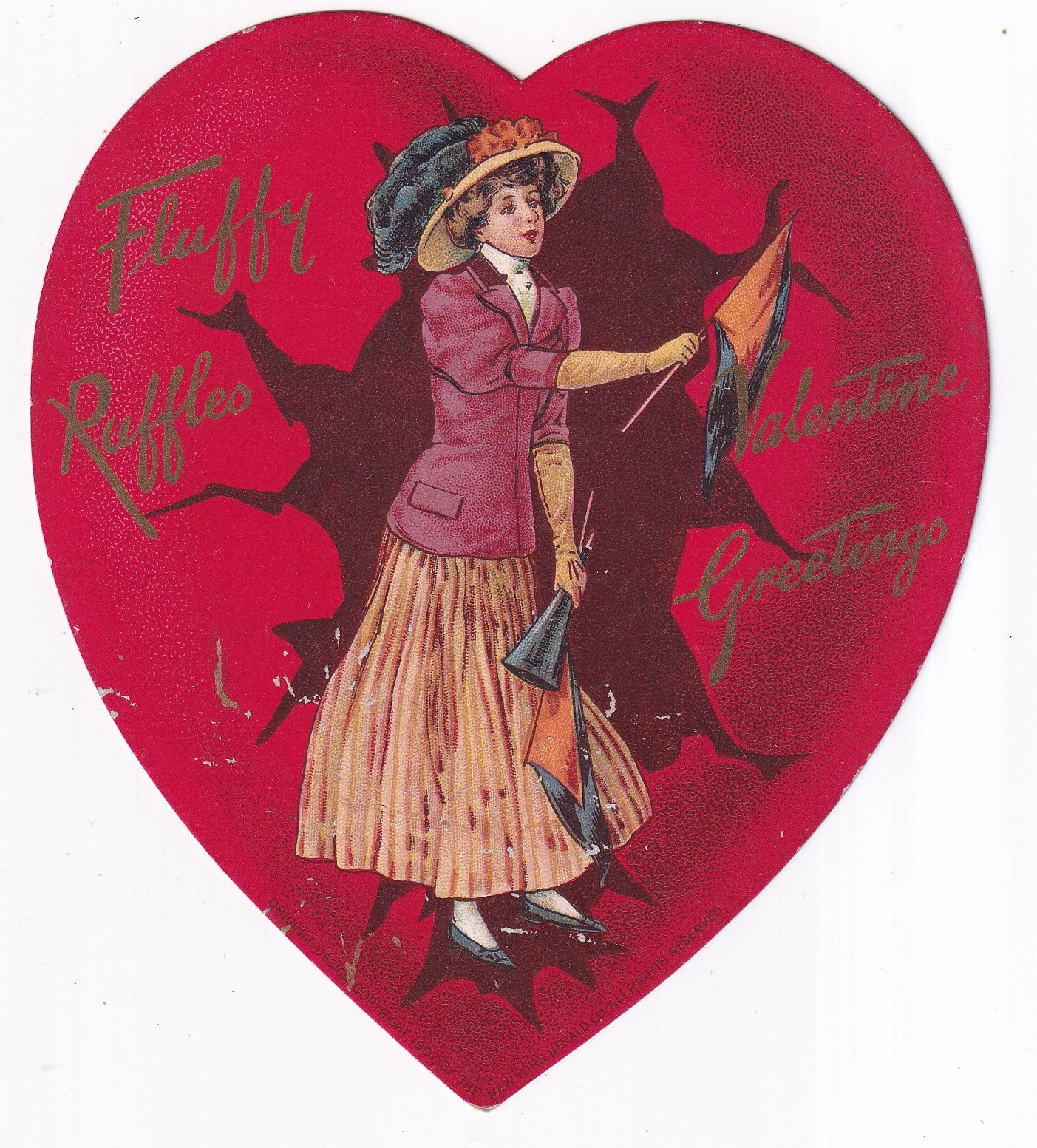 VALENTINE GREETINGS, woman cheerleader with megaphone and flags