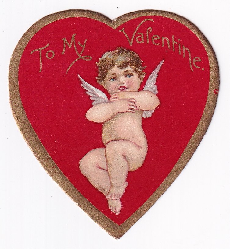 TO MY VALENTINE, cupid faces front, arms crossed, knees tucked upwards