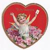 TO MY VALENTINE, girl angel in roses flowers holds up a letter