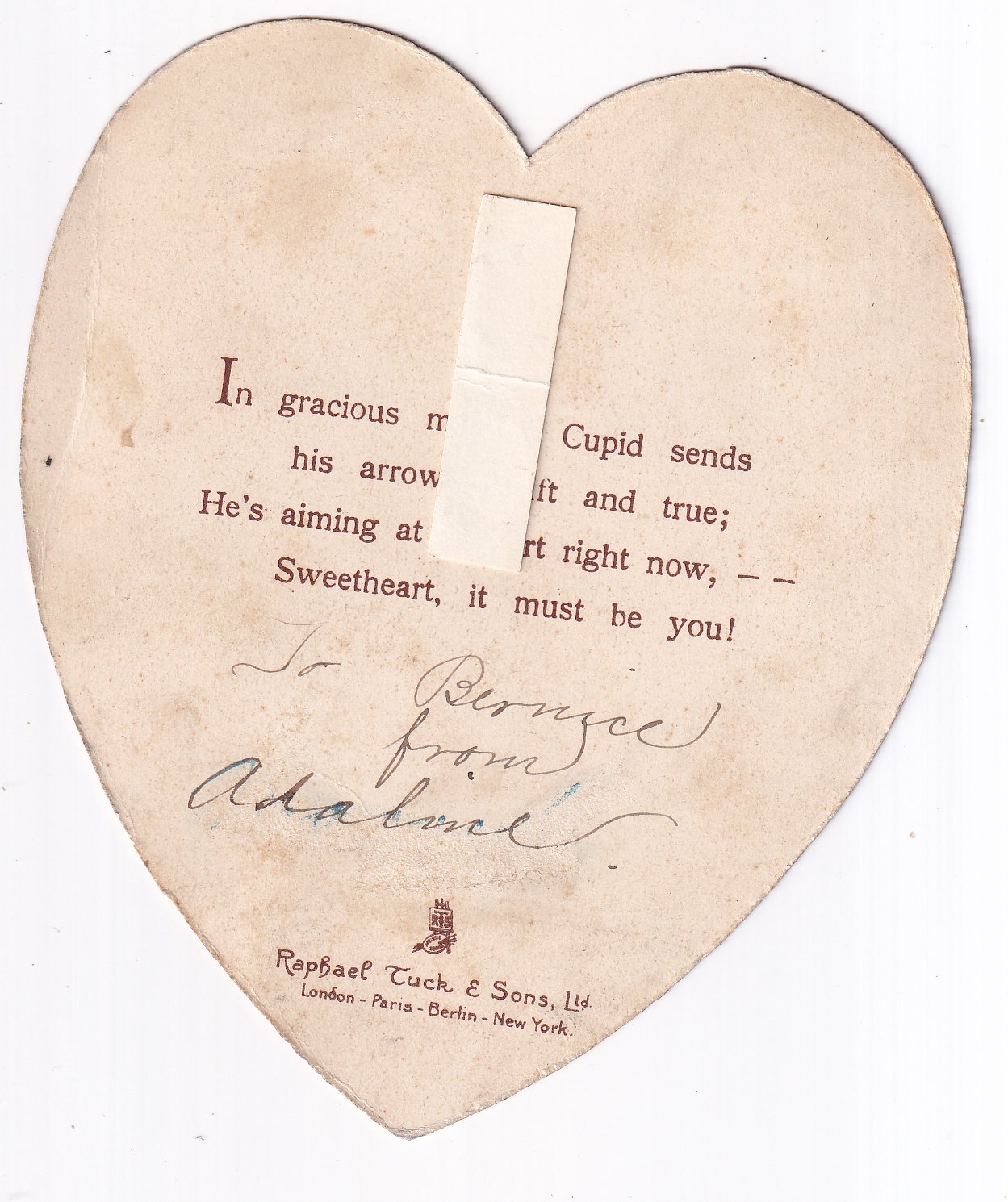 Valentine, heart shaped, gold background, cupids, artist Brundage,