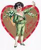 TO MY VALENTINE, boy in green with basket of lily of the valley flowers
