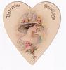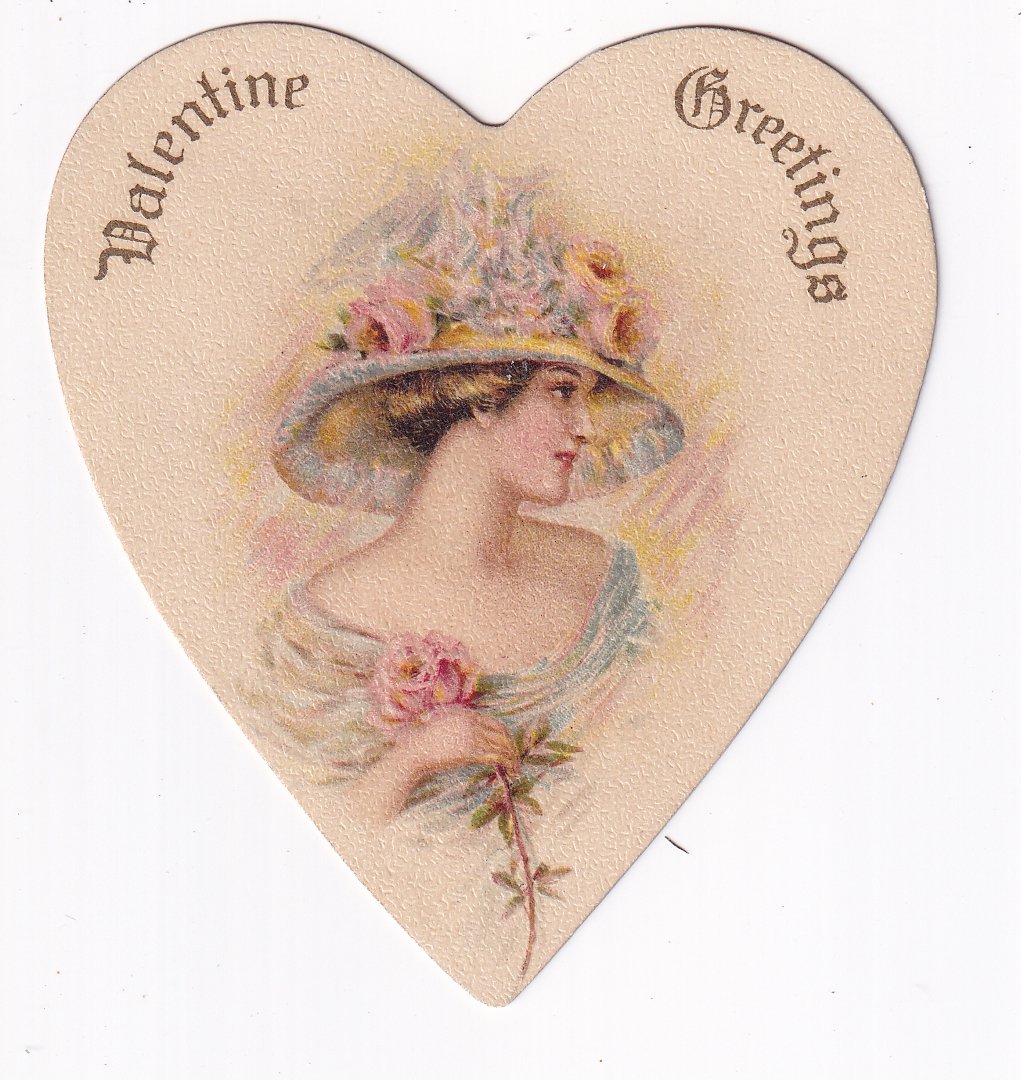 VALENTINE GREETINGS, glamor girl blue gown, large hat, she holds a rose