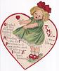 MY VALENTINE, heart shaped artsit Wiederseim, girl in green dress catches a red heart