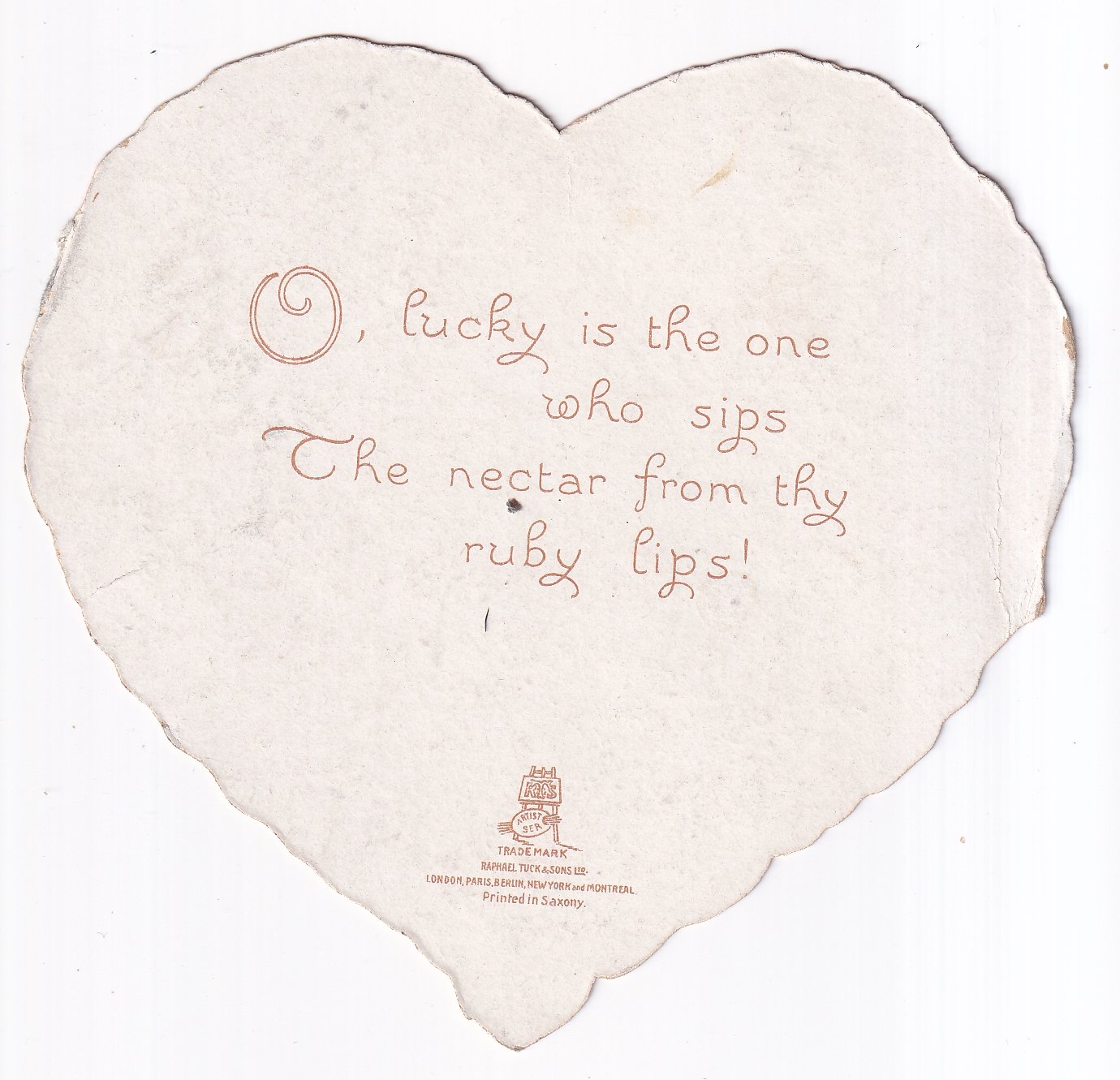 on reverse O, LUCKY IS THE ONE WHO SIPS THE NECTAR FROM THY RUBY LIPS!