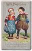 Valentine, rectangular panel, Brundage artist, children, grey green background