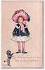 girl in large hat with blue coat and white skirt, poodle