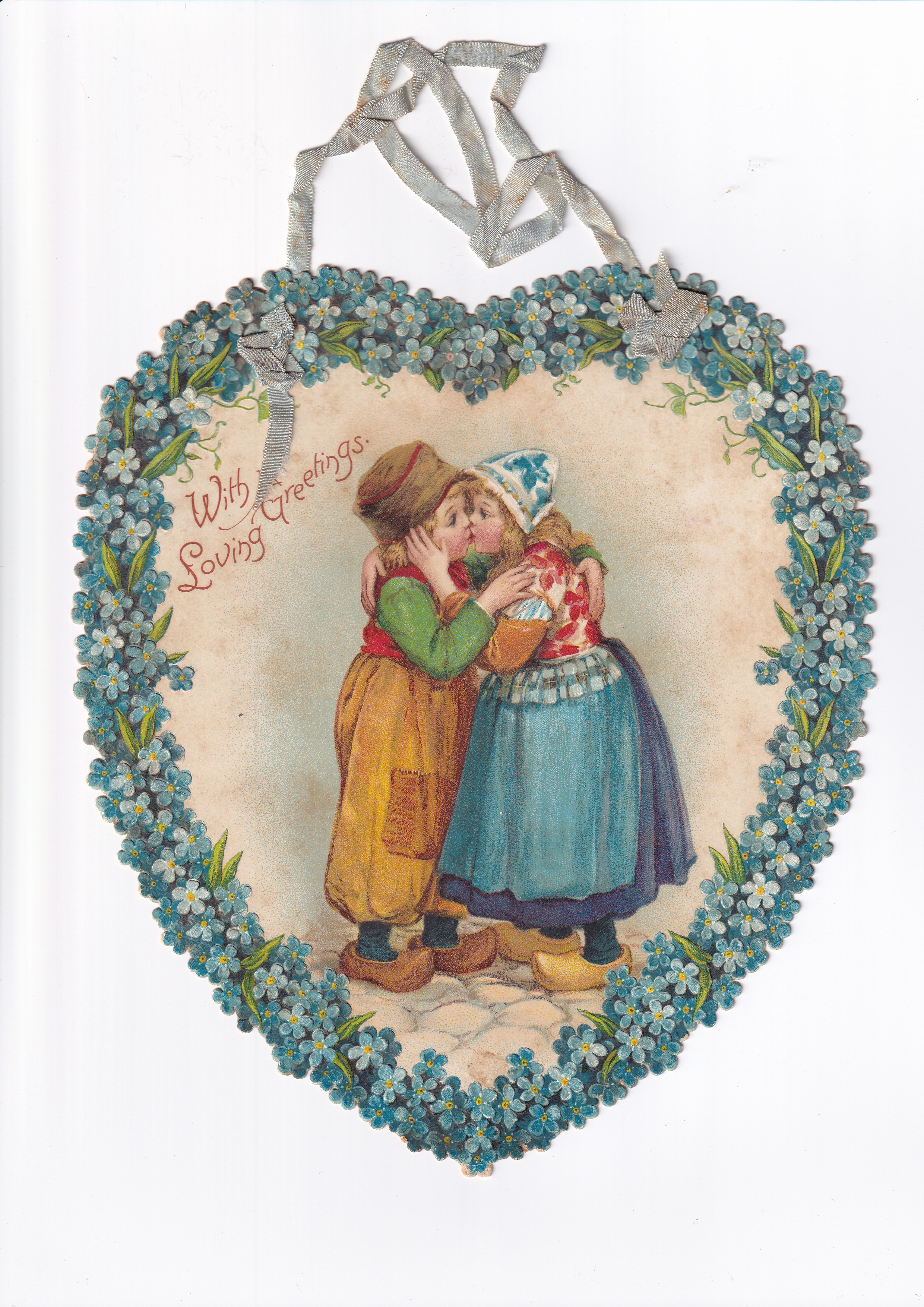 WITH LOVING GREETINGS, or TO MY VALENTINE, blue floral border