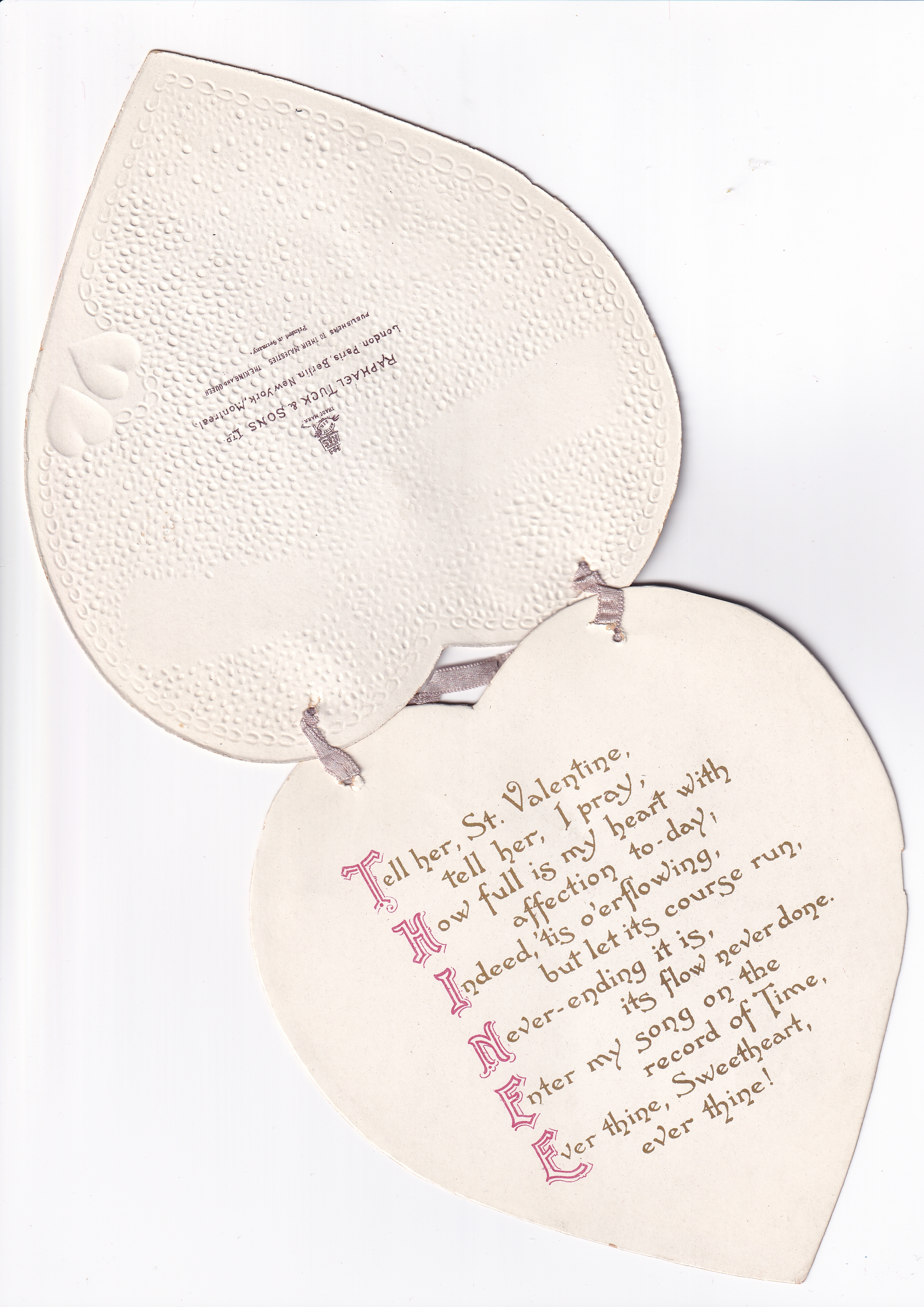 TELL HER, ST VALENTINE, TELL HER, I PRAY, HOW FULL IS MY HEART WITH AFFECTION TO-DAY; INDEED, TIS O'OERFLOWING, BUT LET ITS COURSE RUN,
