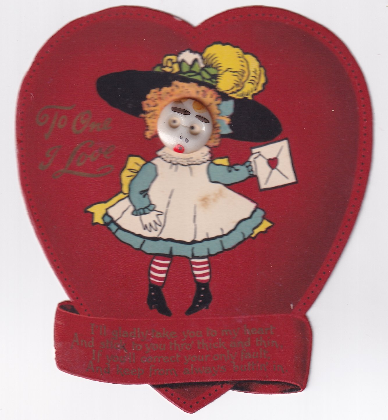 TO ONE I LOVE, girl with large hat holding a valentine card