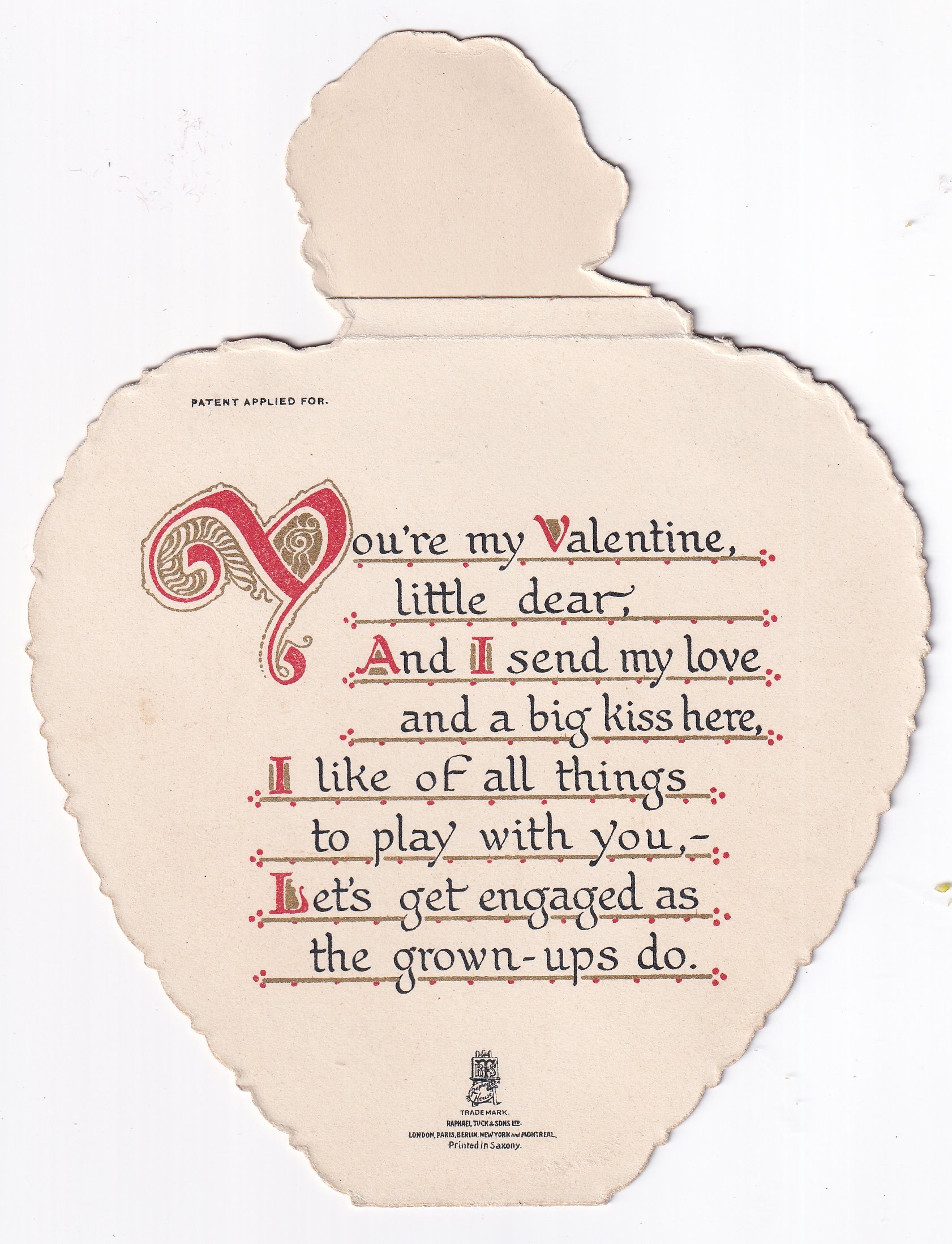 Valentine, heart shaped, red background, gold edge, stand up, children, Brundage artist