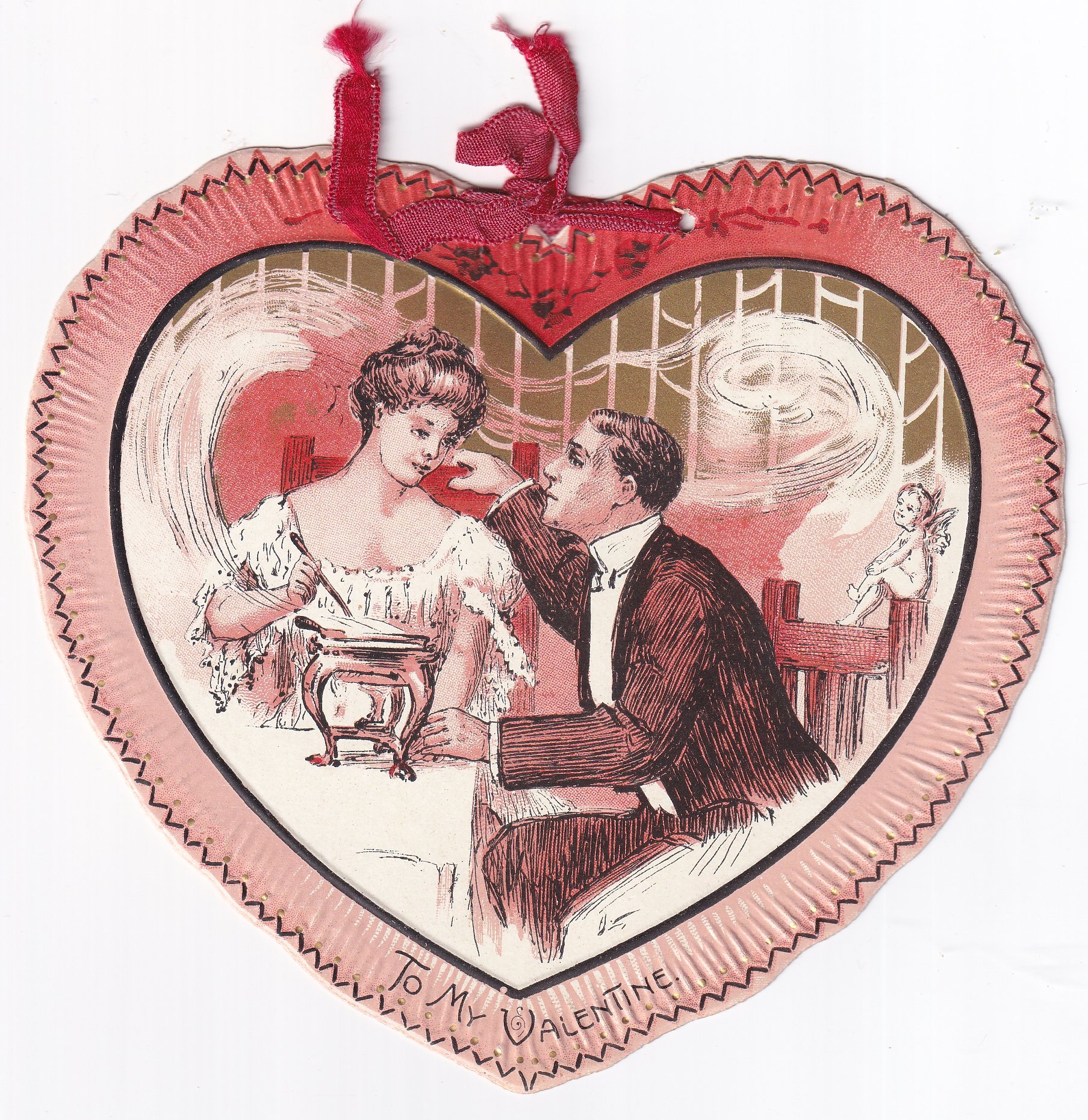 TO MY VALENTINE, romantic couple, cupid in background