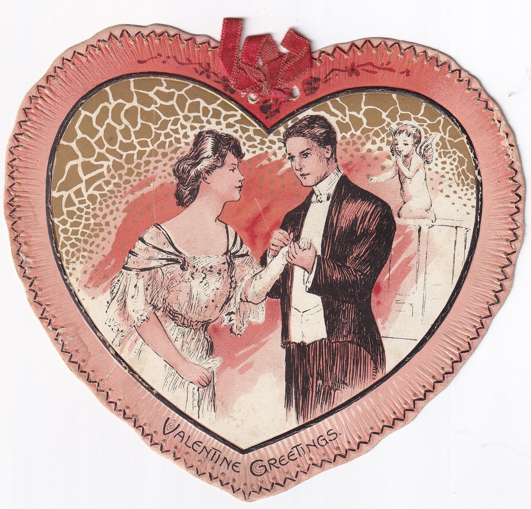 VALENTINE GREETINGS, romantic couple, cupid in background