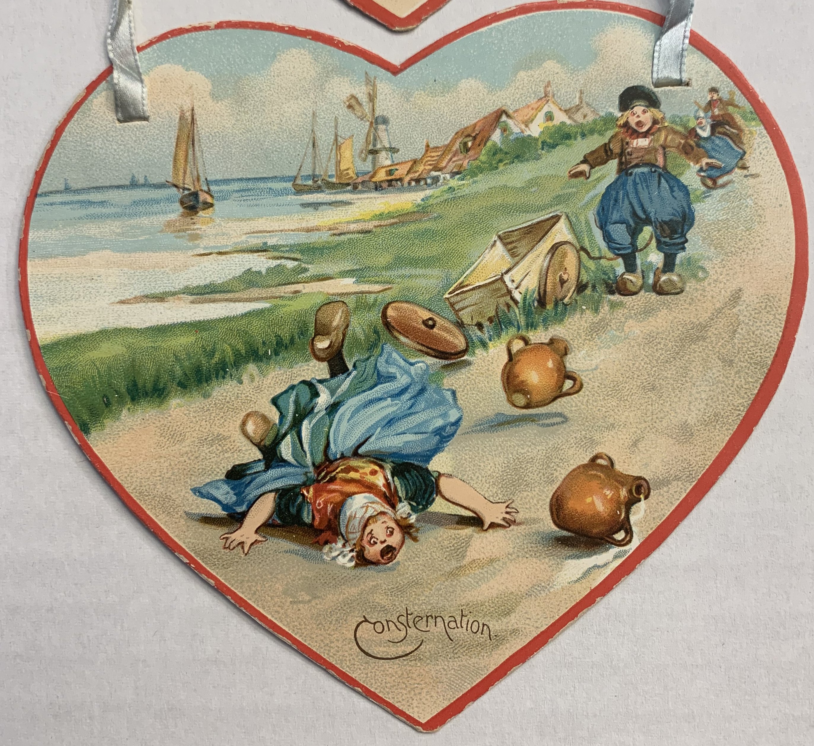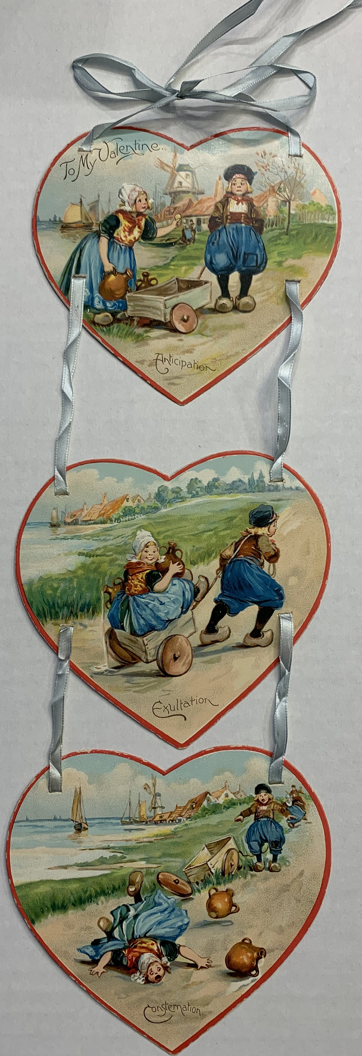 TO MY VALENTINE, ANTICIPATION, EXULTATION, CONSTERNATION, three hearts hanging, Dutch boy and girl