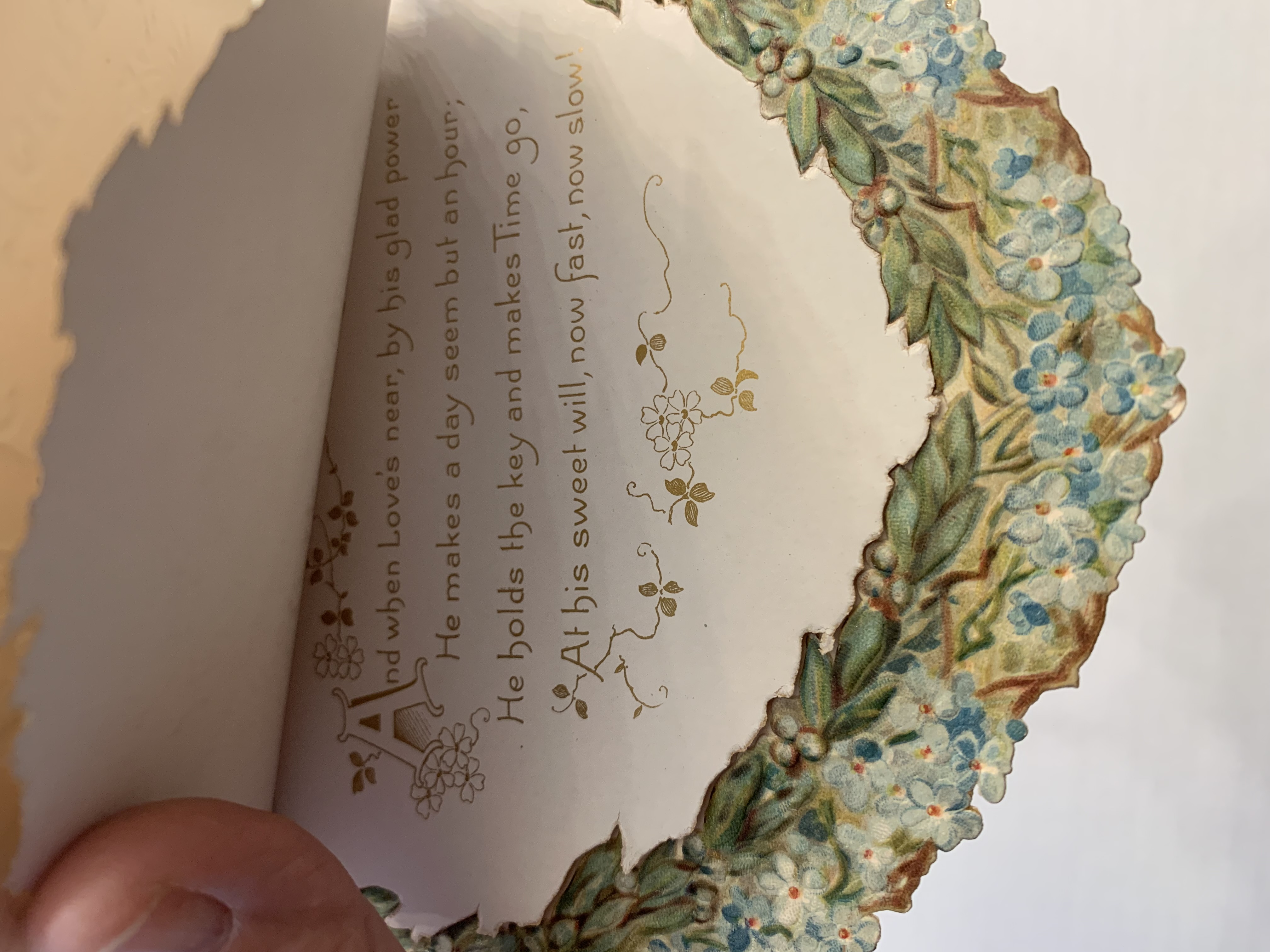 panel 1, SINCE I HAVE LIVED IN LOVE'S SWEET CLIME I TAKE NO COUNT OF PASSING TIME, FOR LOVE CAN TURN, WHEN HE'S NOT NEAR, ONE DAY INTO A WHOLE LONG YEAR.