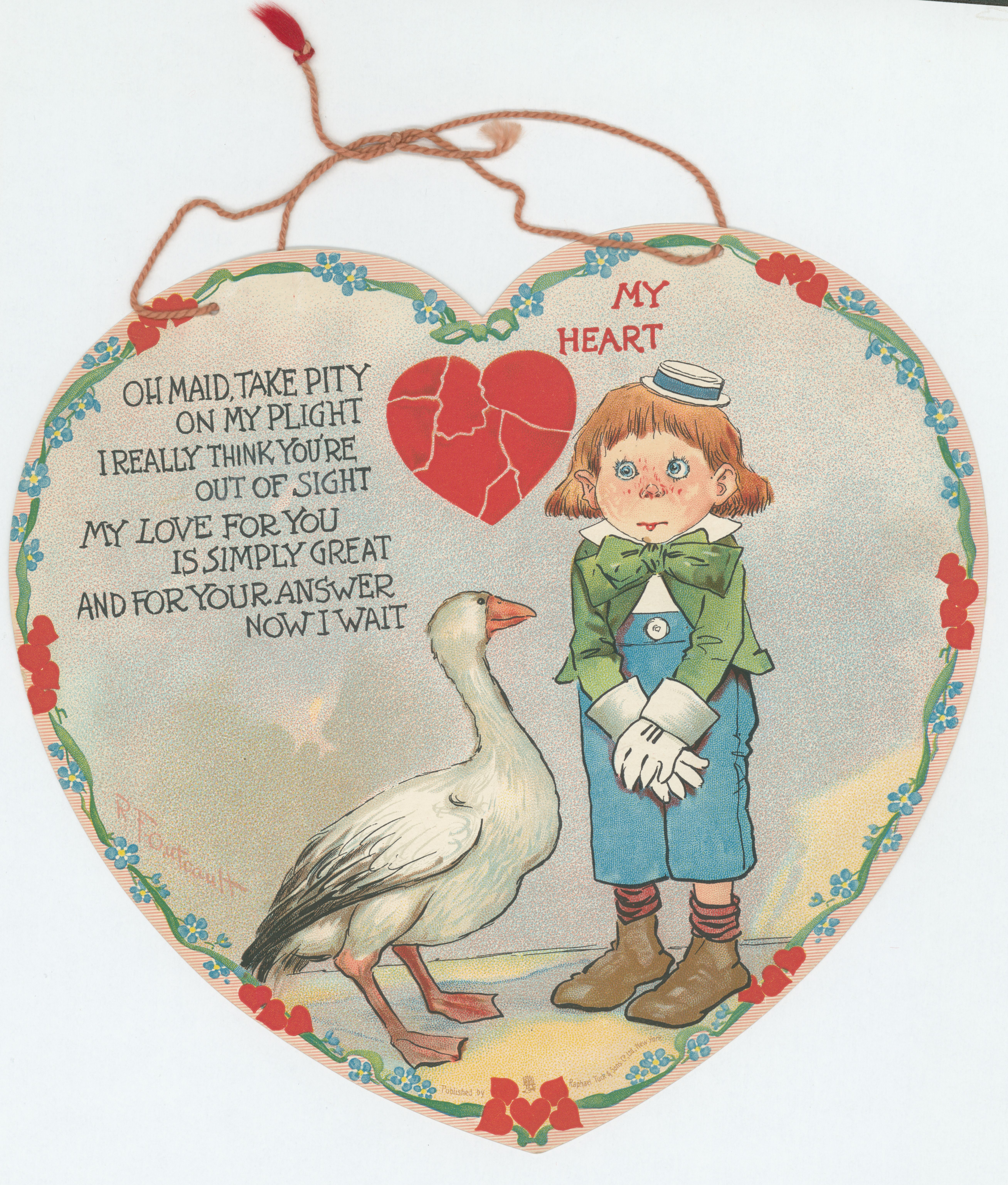 Valentine, heart shaped, hearts, flowers, ribbon border, artist Outcault, Buster Brown