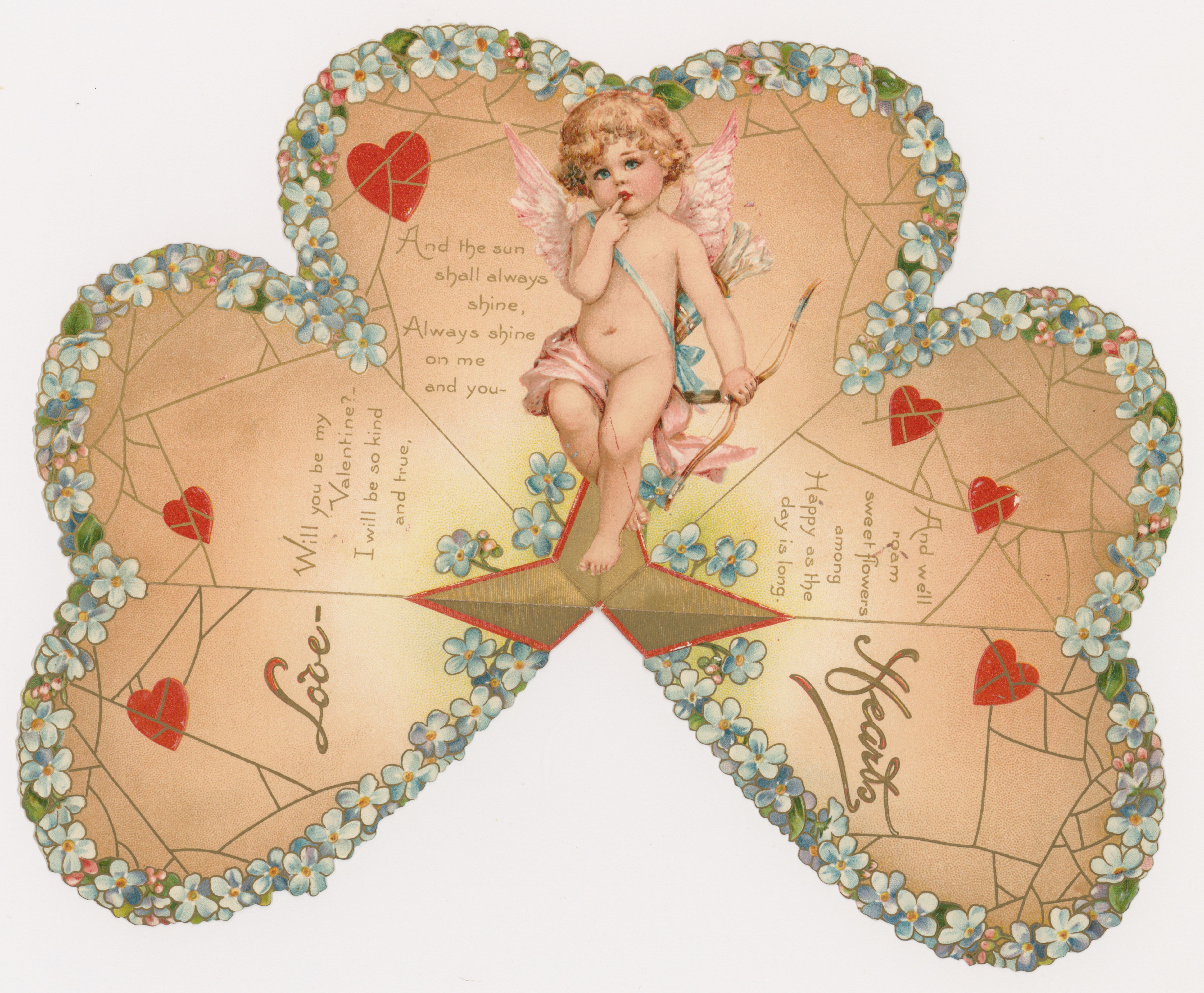 WILL YOU BE MY VALENTINE? I WILL BE SO KIND AND TRUE, AND THE SUN SHALL ALWAYS SHINE, ALWAYS SHINE ON ME AND YOU-AND WE'LL ROAM SWEET FLOWERS AMONG HAPPY AS THE DAY IS LONG.