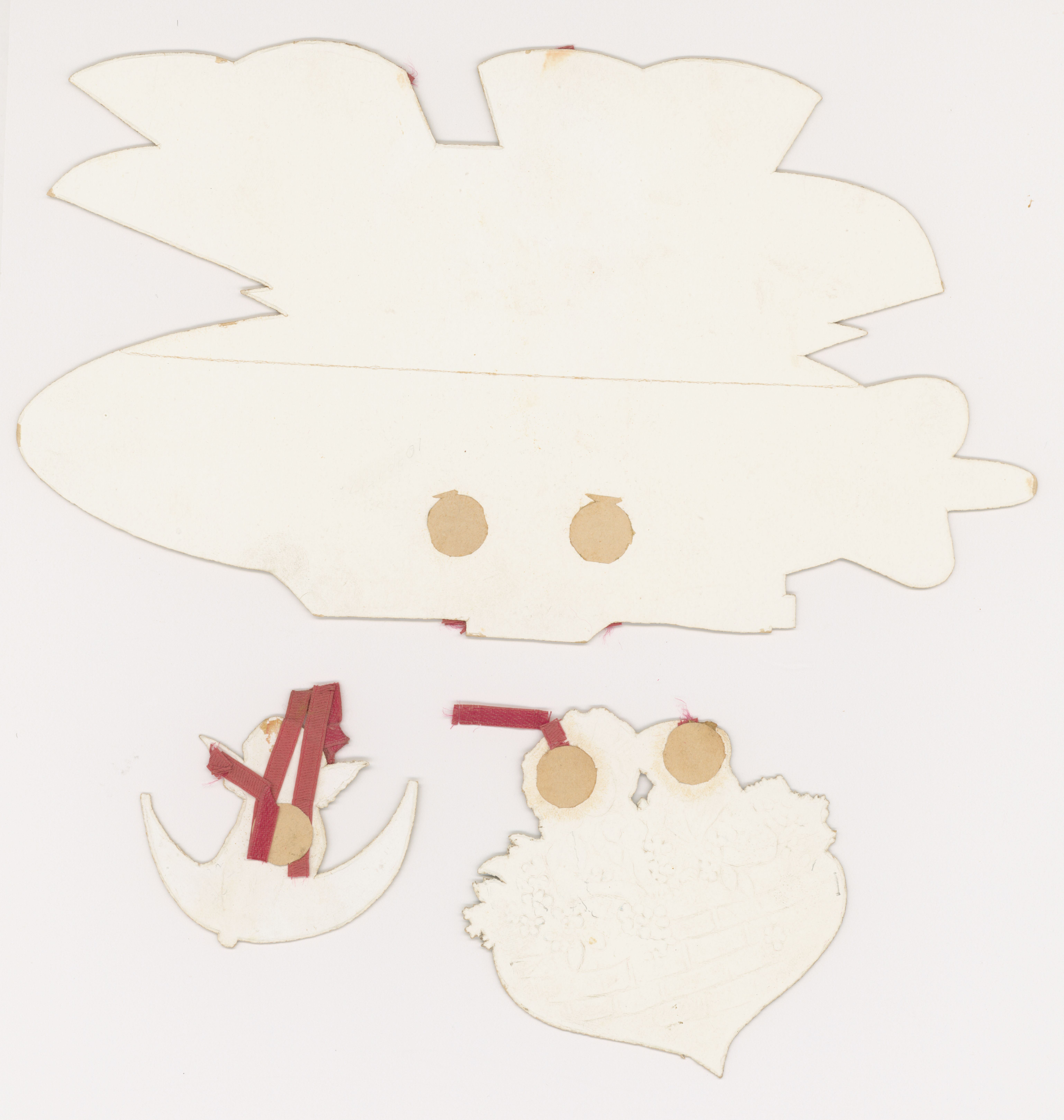 10 x 6 in. the airship, the figures are 4 x 4 in and the cupid in the moon 2 1/2 x 3 inches