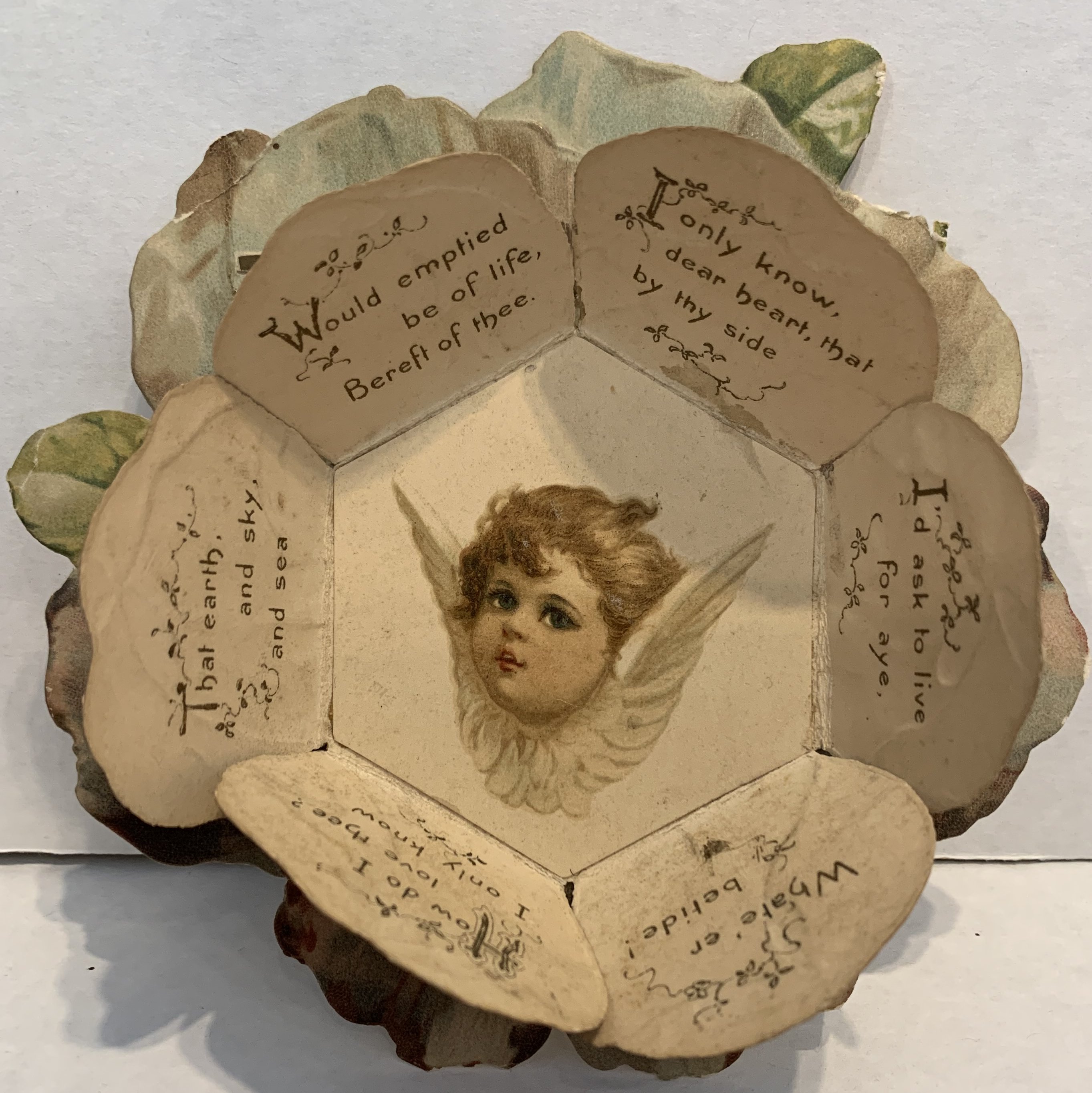 image of a cherub and some lines of verse inside the petals
