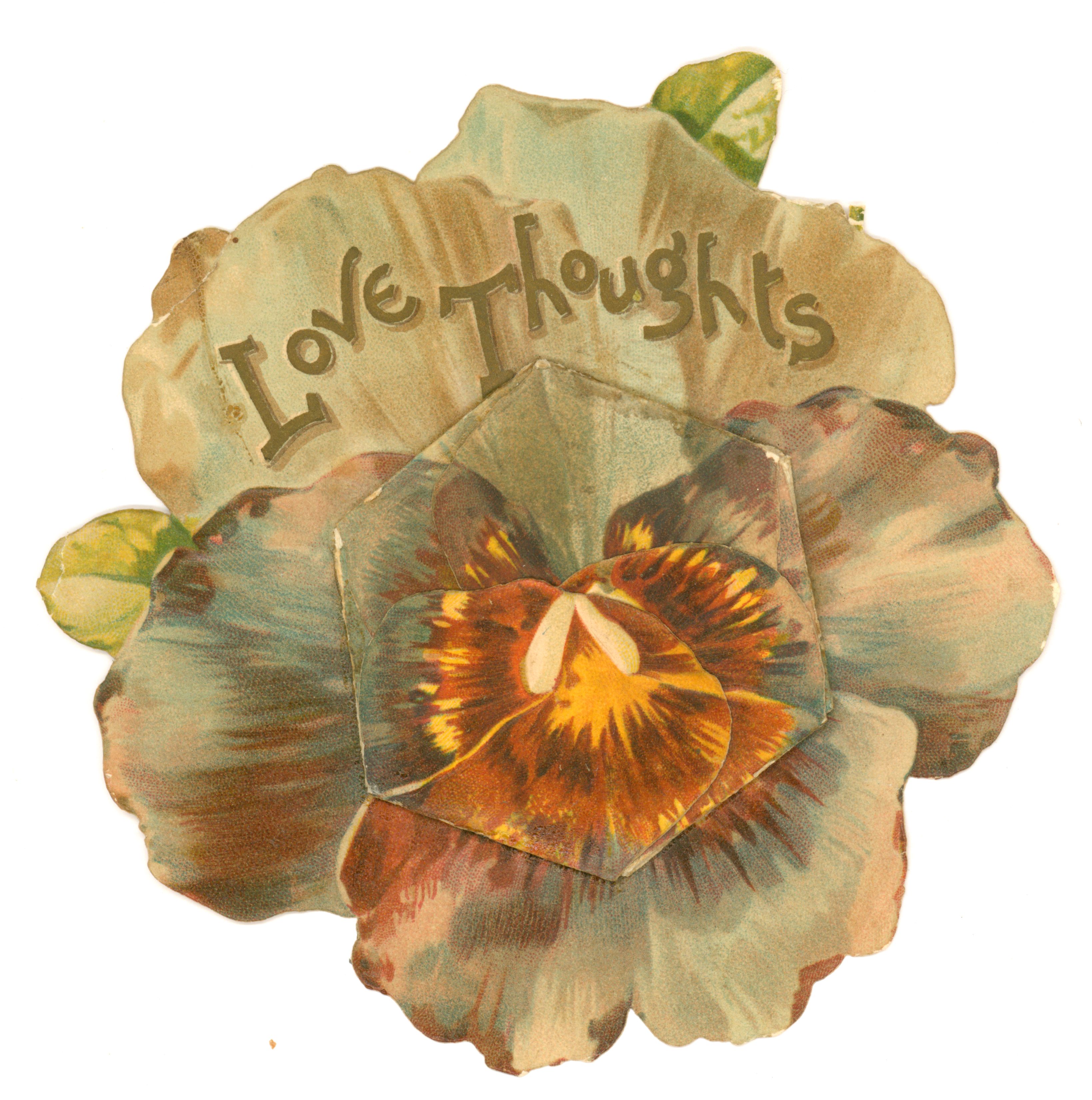 LOVE THOUGHTS, Fold out 3 D flower, Valentine, mechanical, Tuck circa 1900