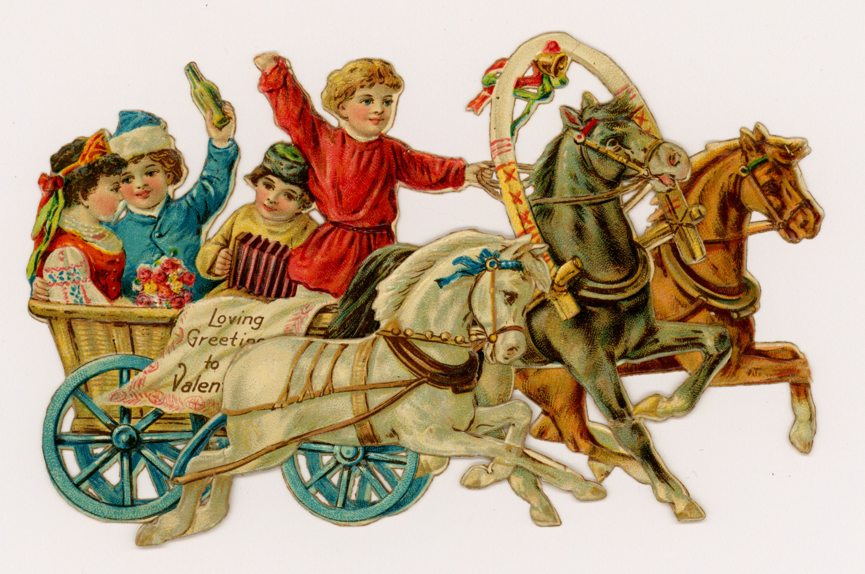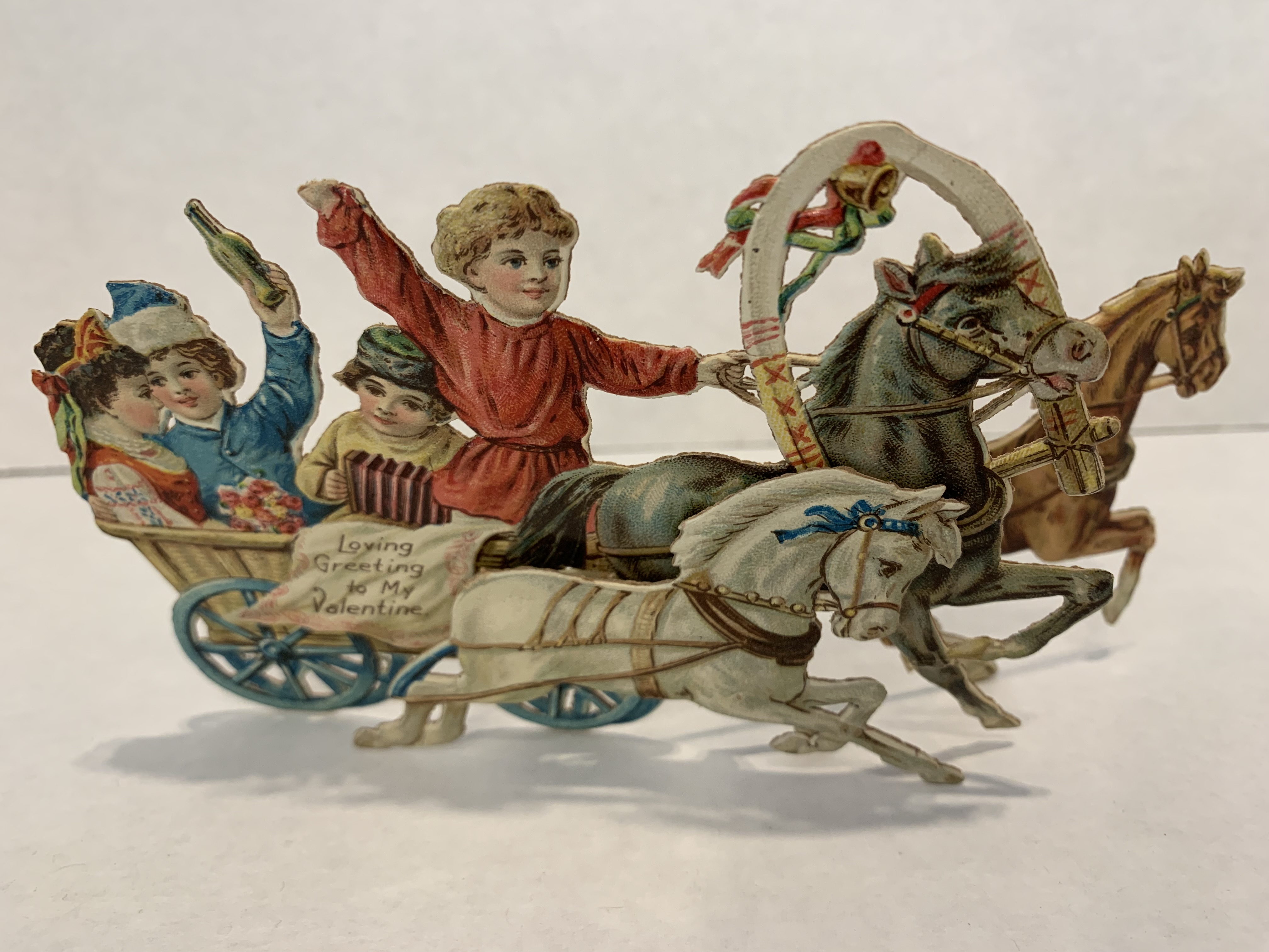 LOVING GREETING TO MY VALENTINE, 3 D horse cart