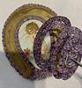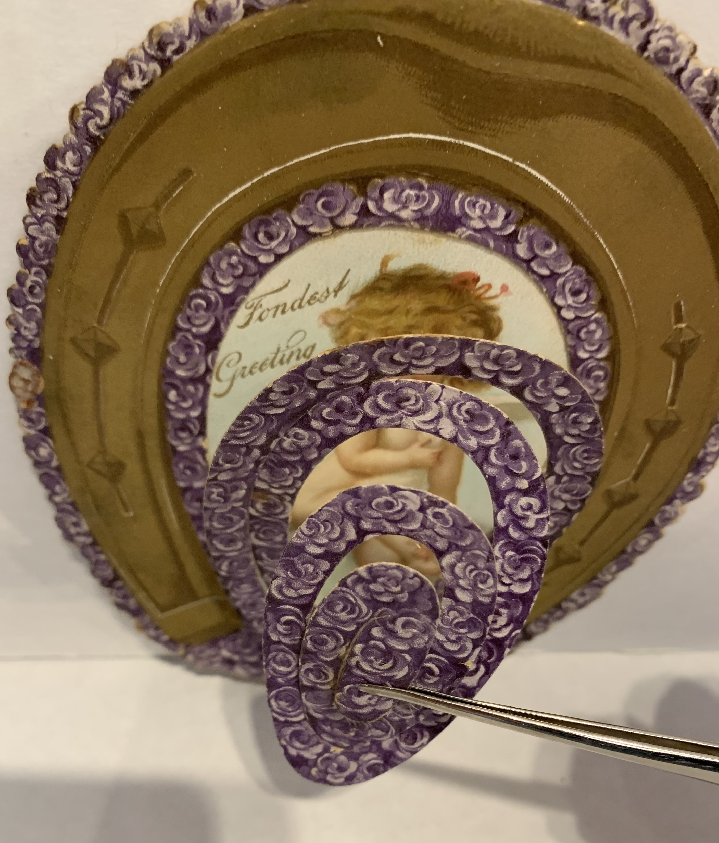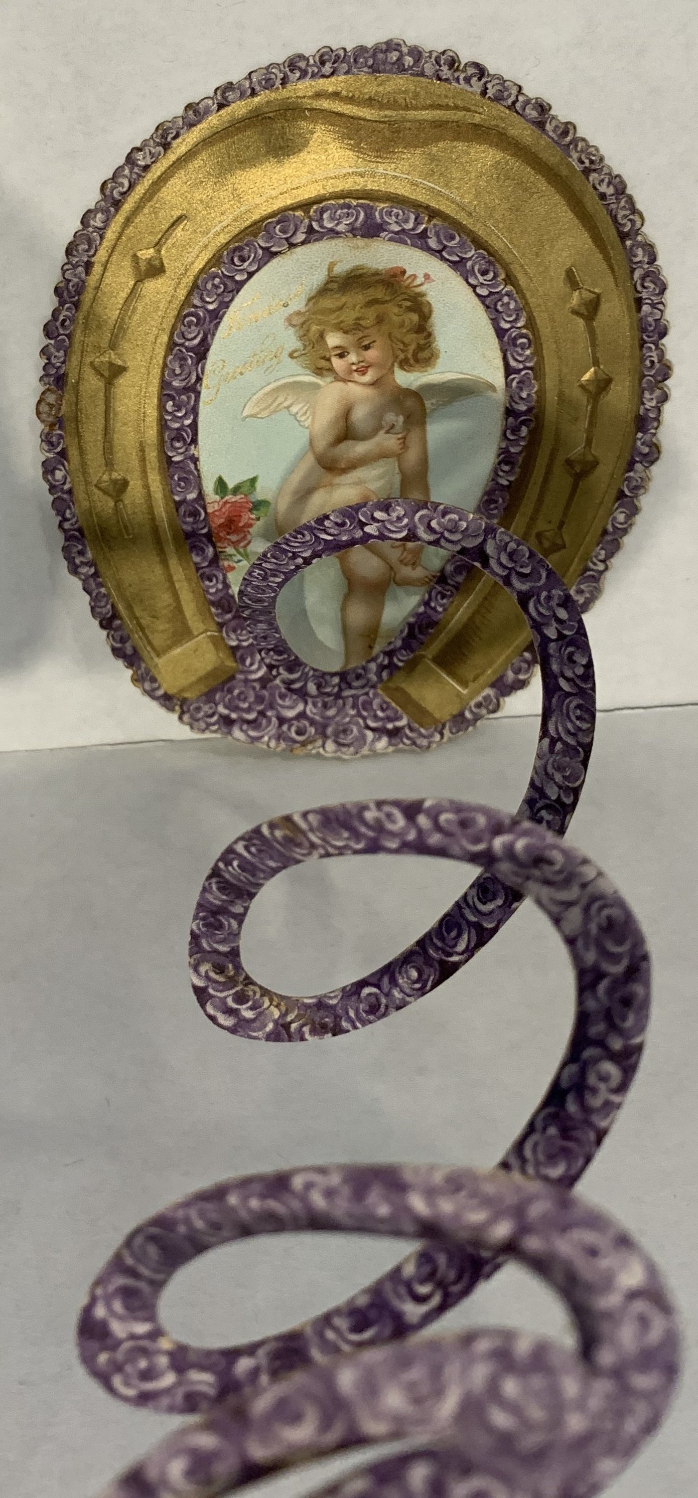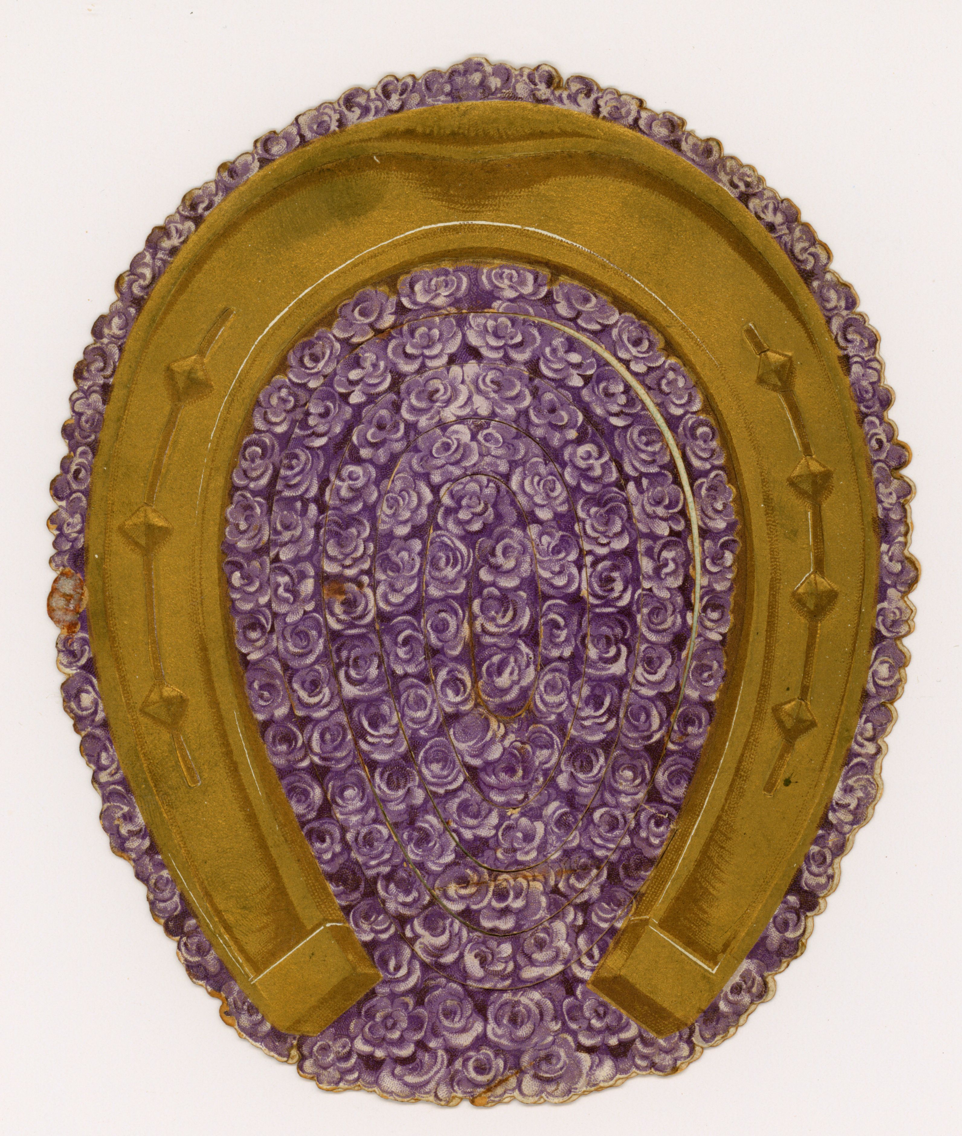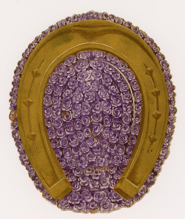 Forget me not flowers and gold gilt horseshoe, circular perforations