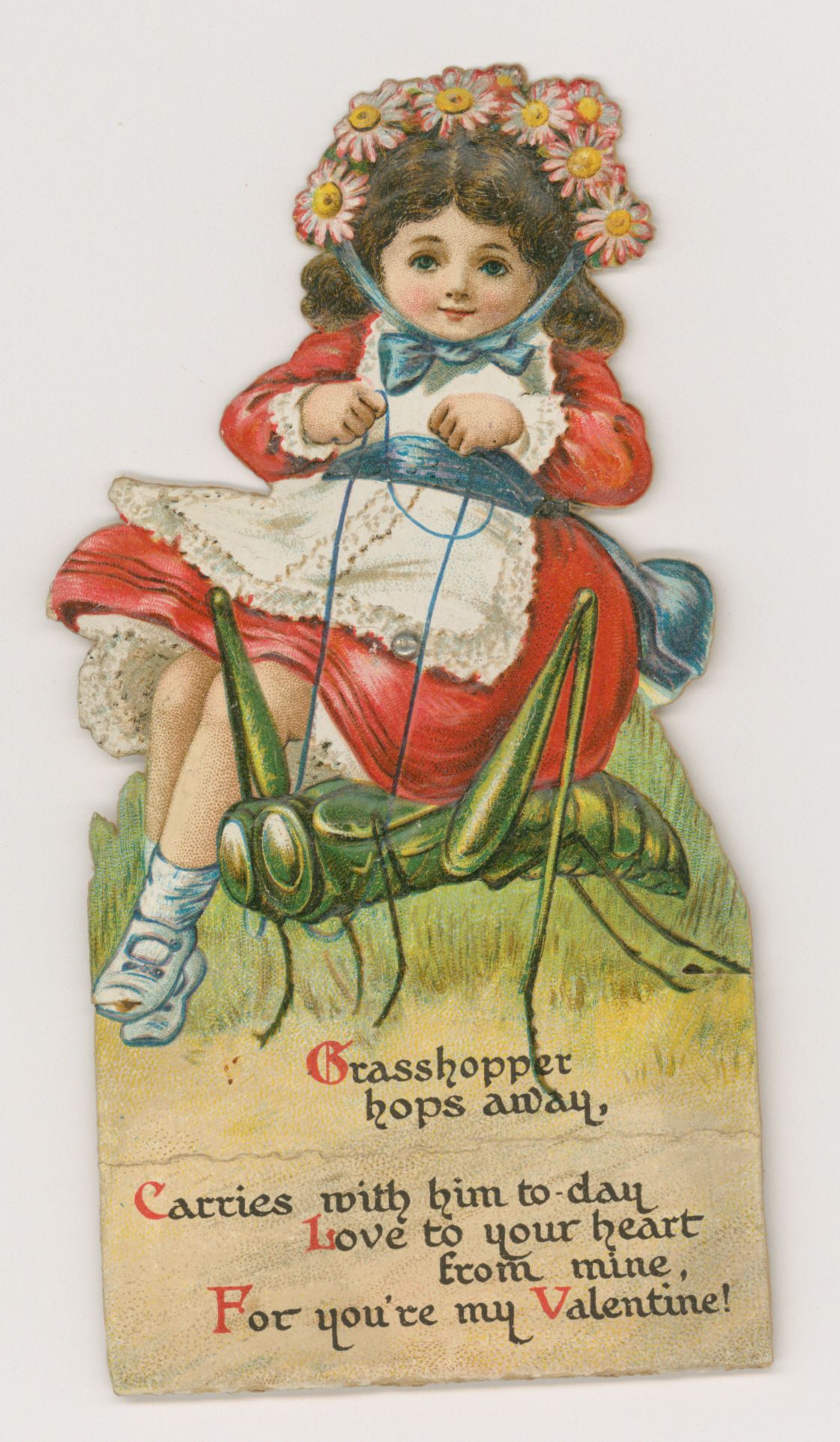GRASSHOPPER HOPS AWAY, CARRIES WITH HIM TO-DAY LOVE TO YOUR HEART FROM MINE, FOR YOU'RE MY VALENTINE!