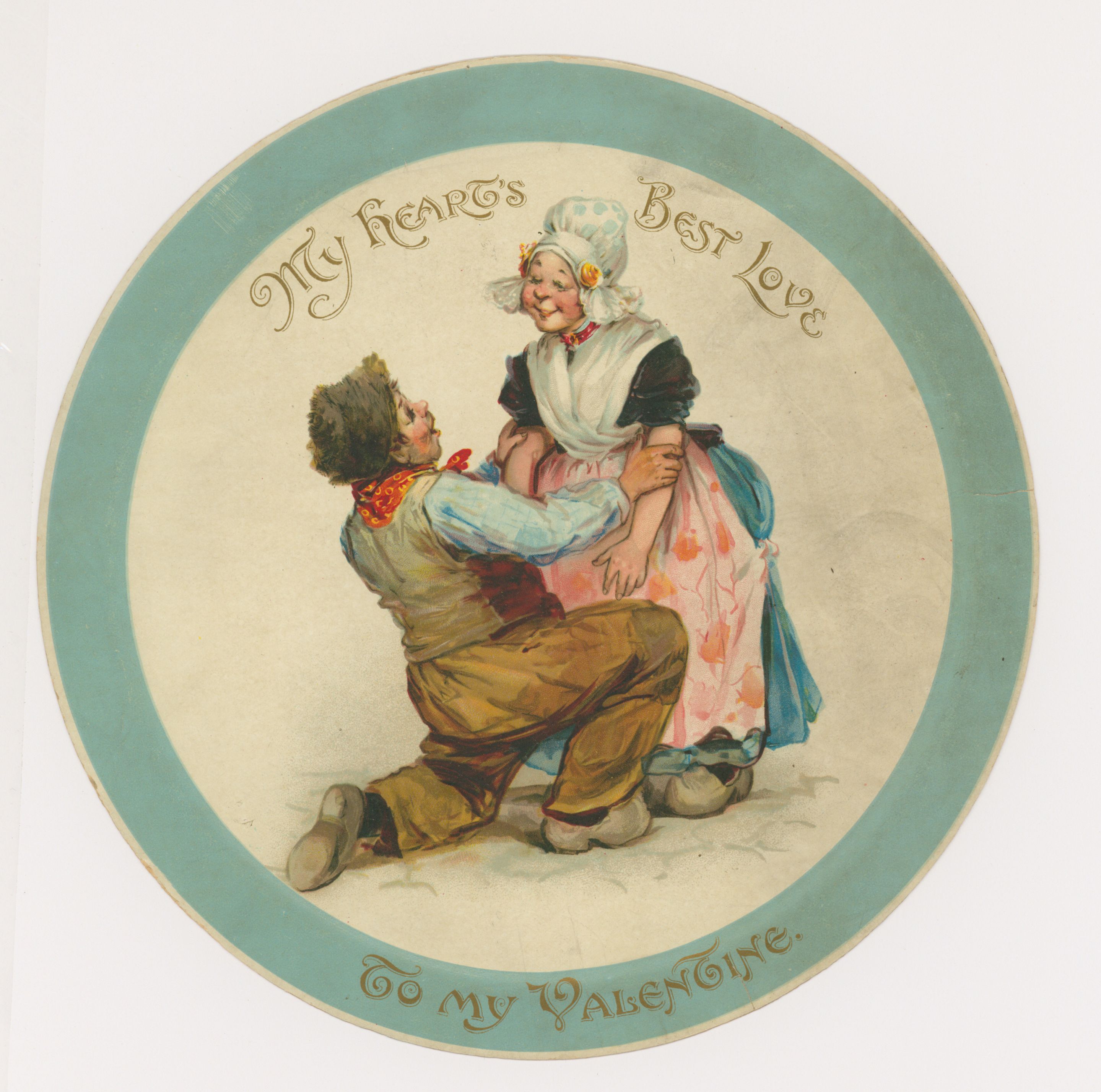 MY HEART'S BEST LOVE TO MY VALENTINE, Dutch man down on his knee before his sweetheart