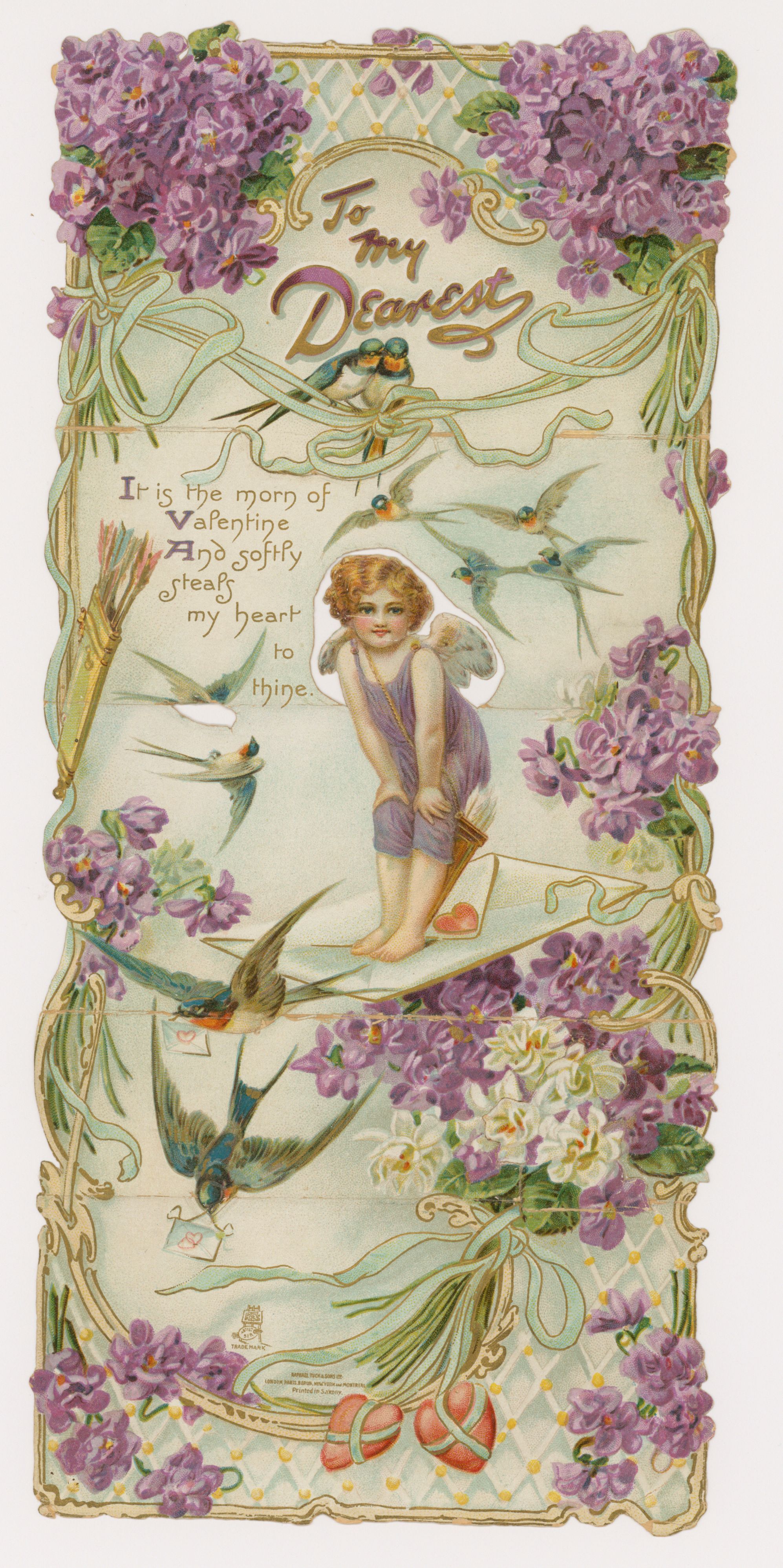 TO MY DEAREST, Cupid birds violet flowers letter hanging valentine,