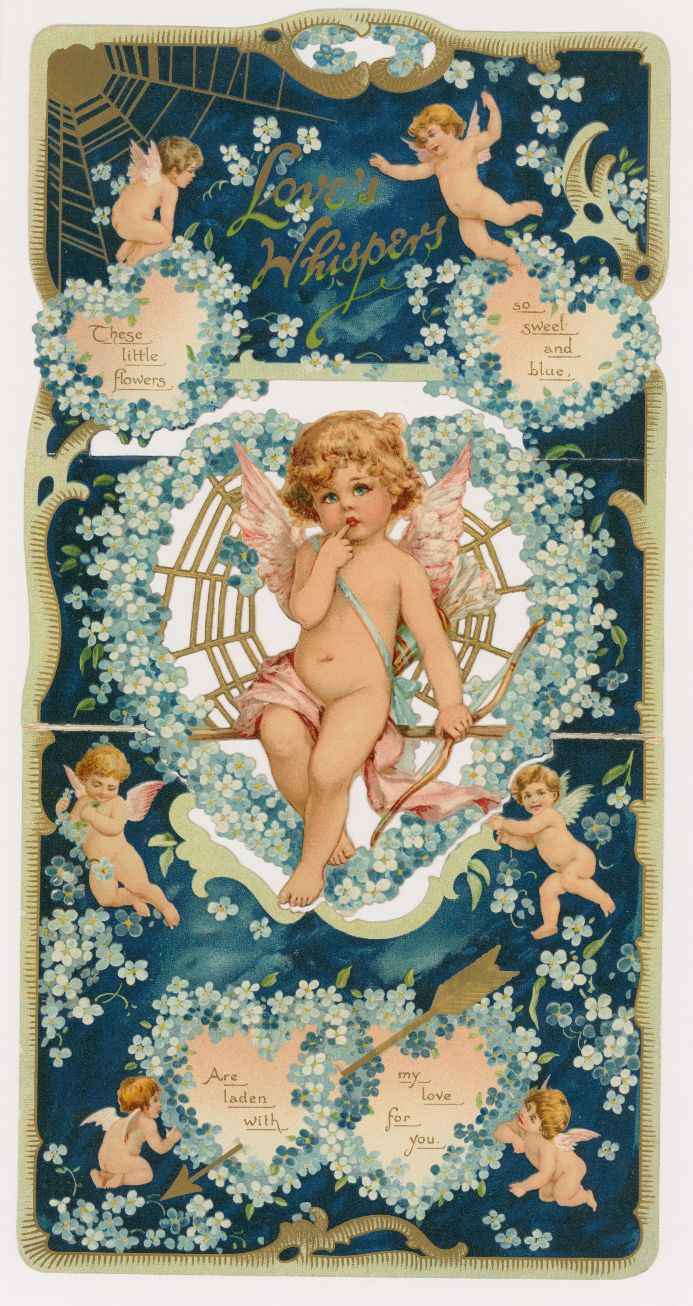 LOVE'S WHISPERS, Cupids, spider webs, hanging valentine,