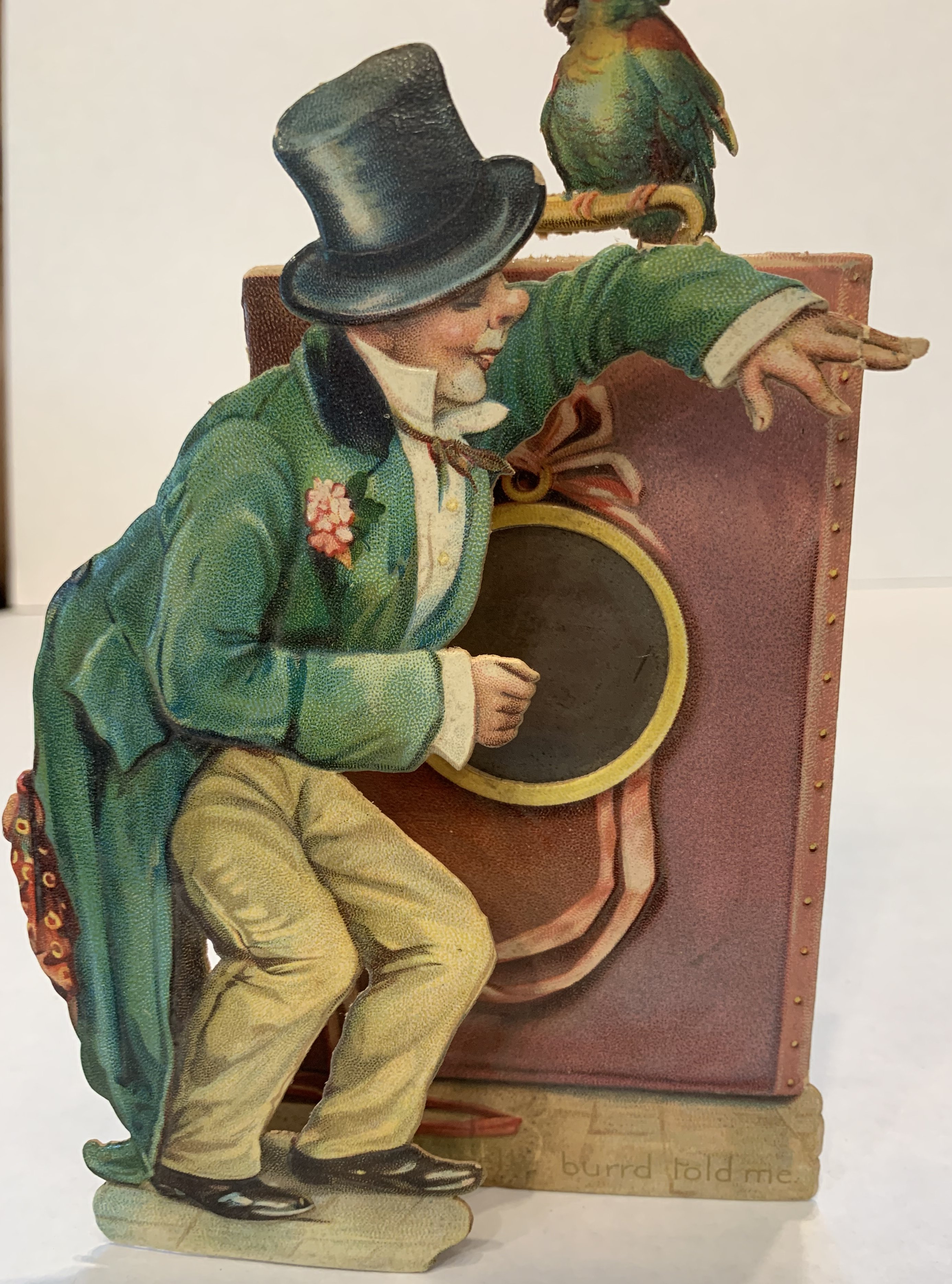 TO MEE LUV, A LEETLE BURRD TOLD ME, Irish man in green coat with black top hat