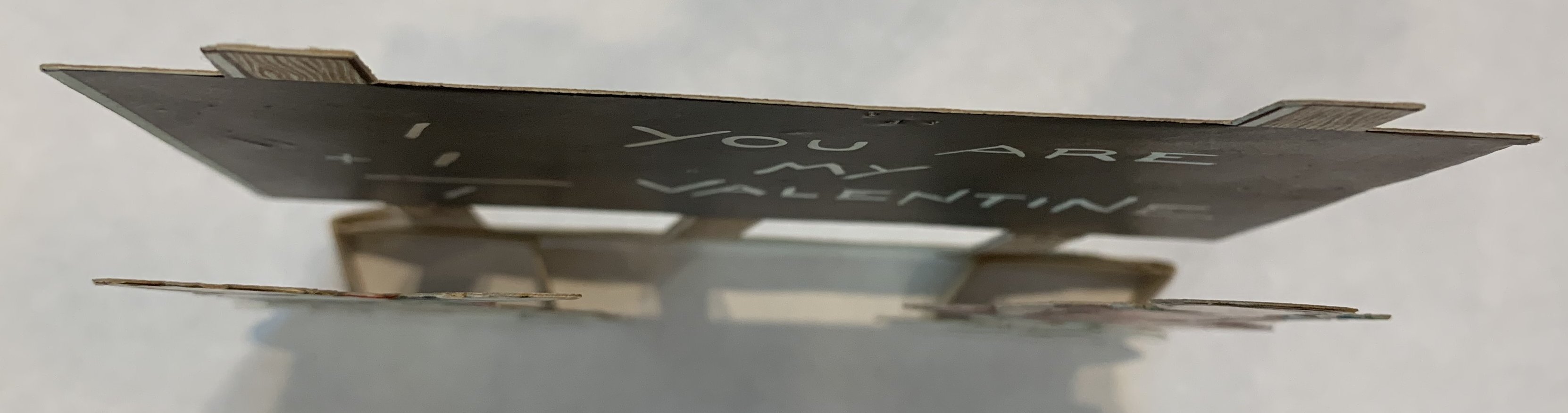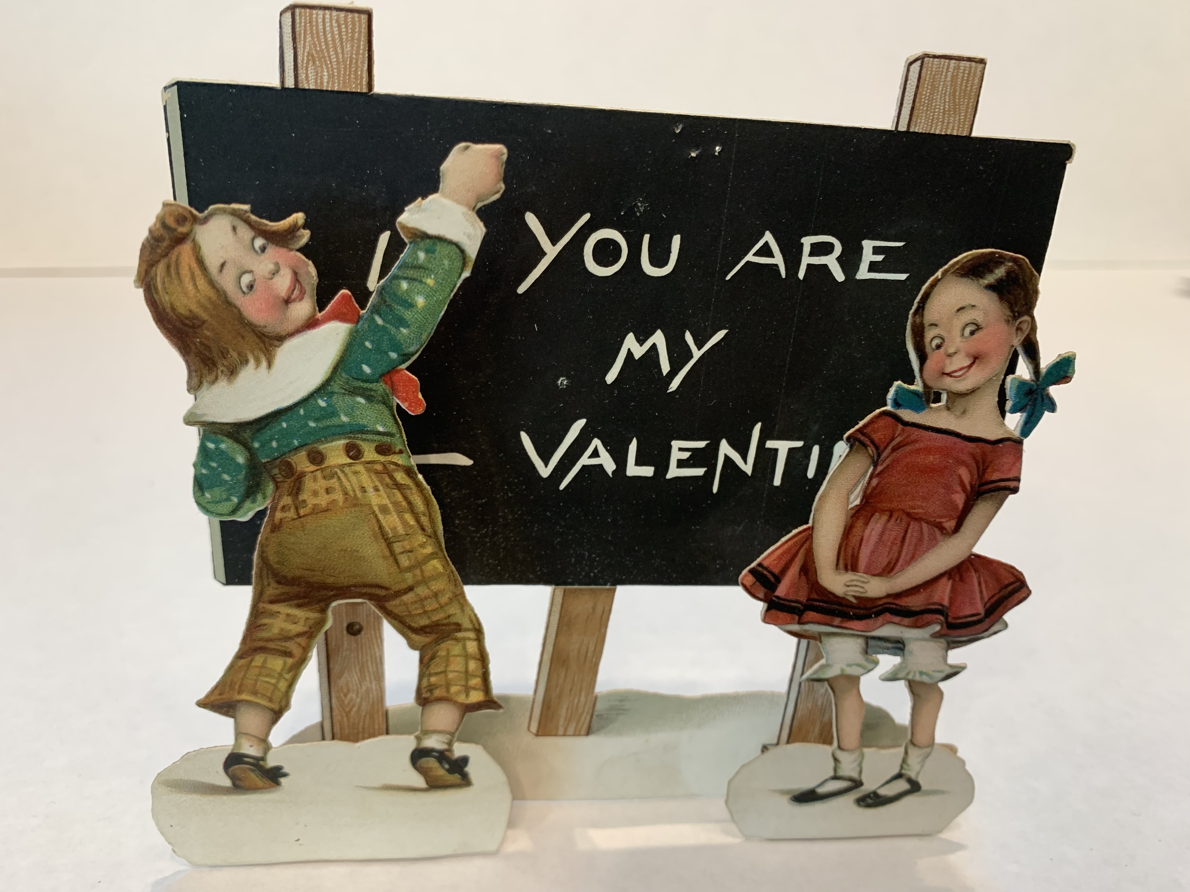 YOU ARE MY VALENTINE, boy writes on blackboard