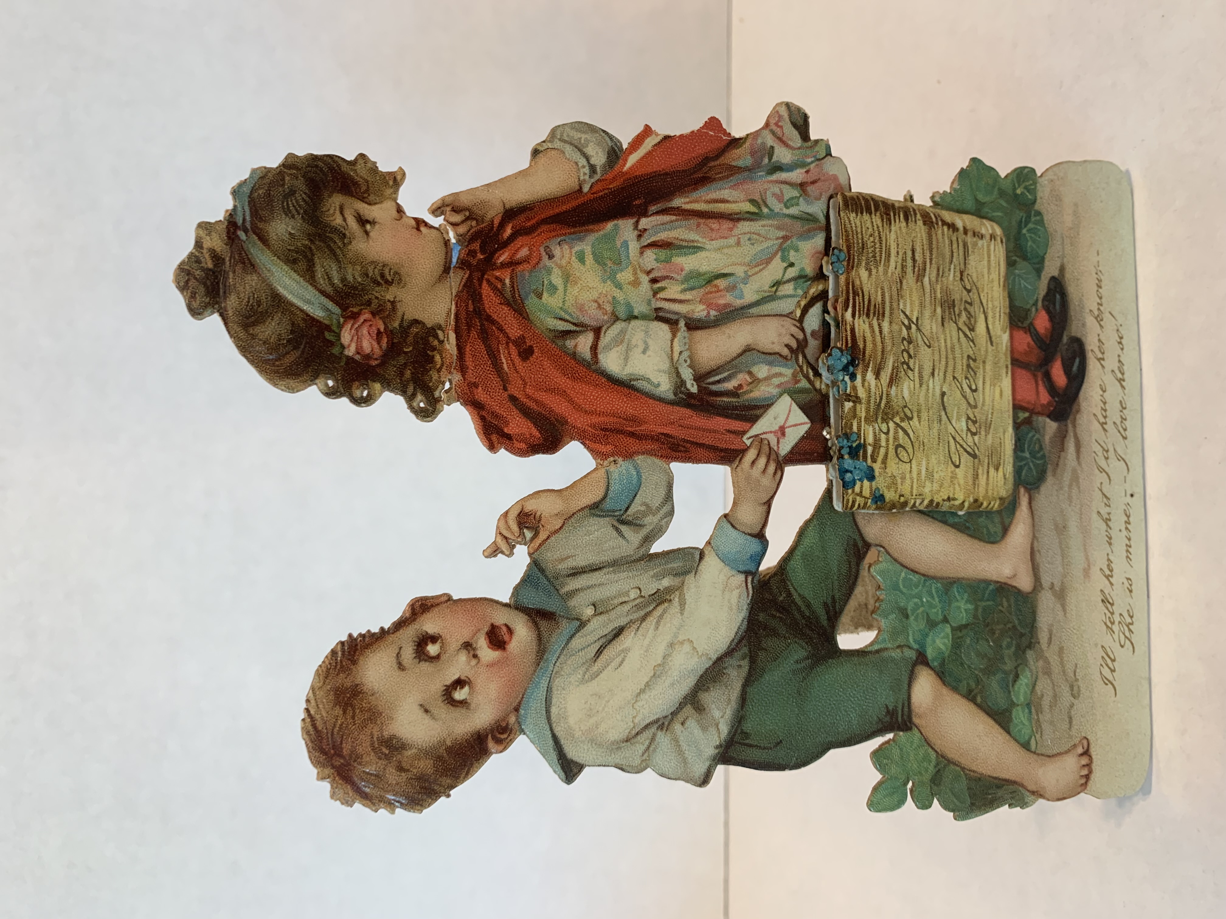 TO MY VALENTINE, boy places valentine into basket of shy girl