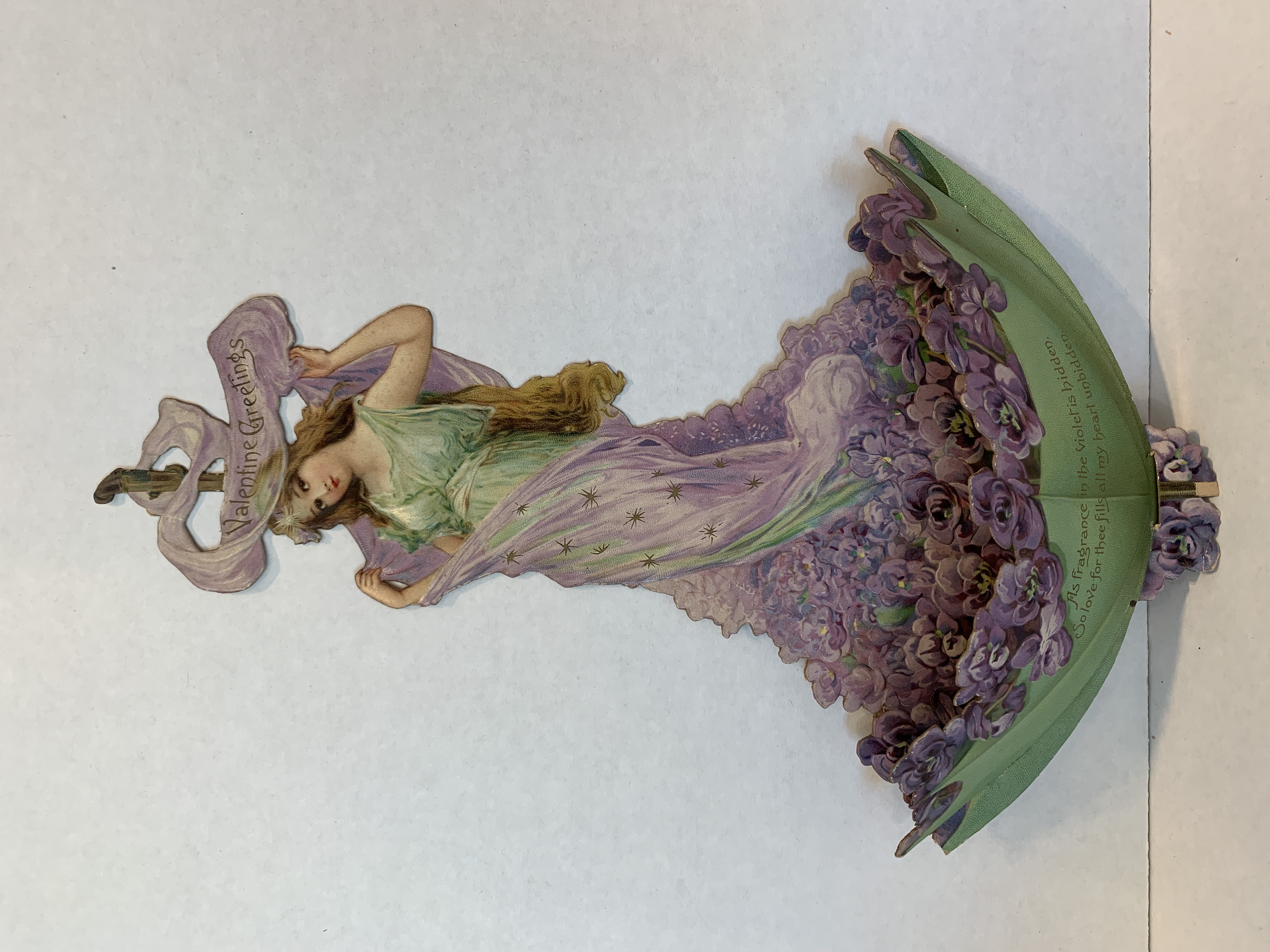VALENTINE GREETINGS, glamorous woman in green gown, pocket at base