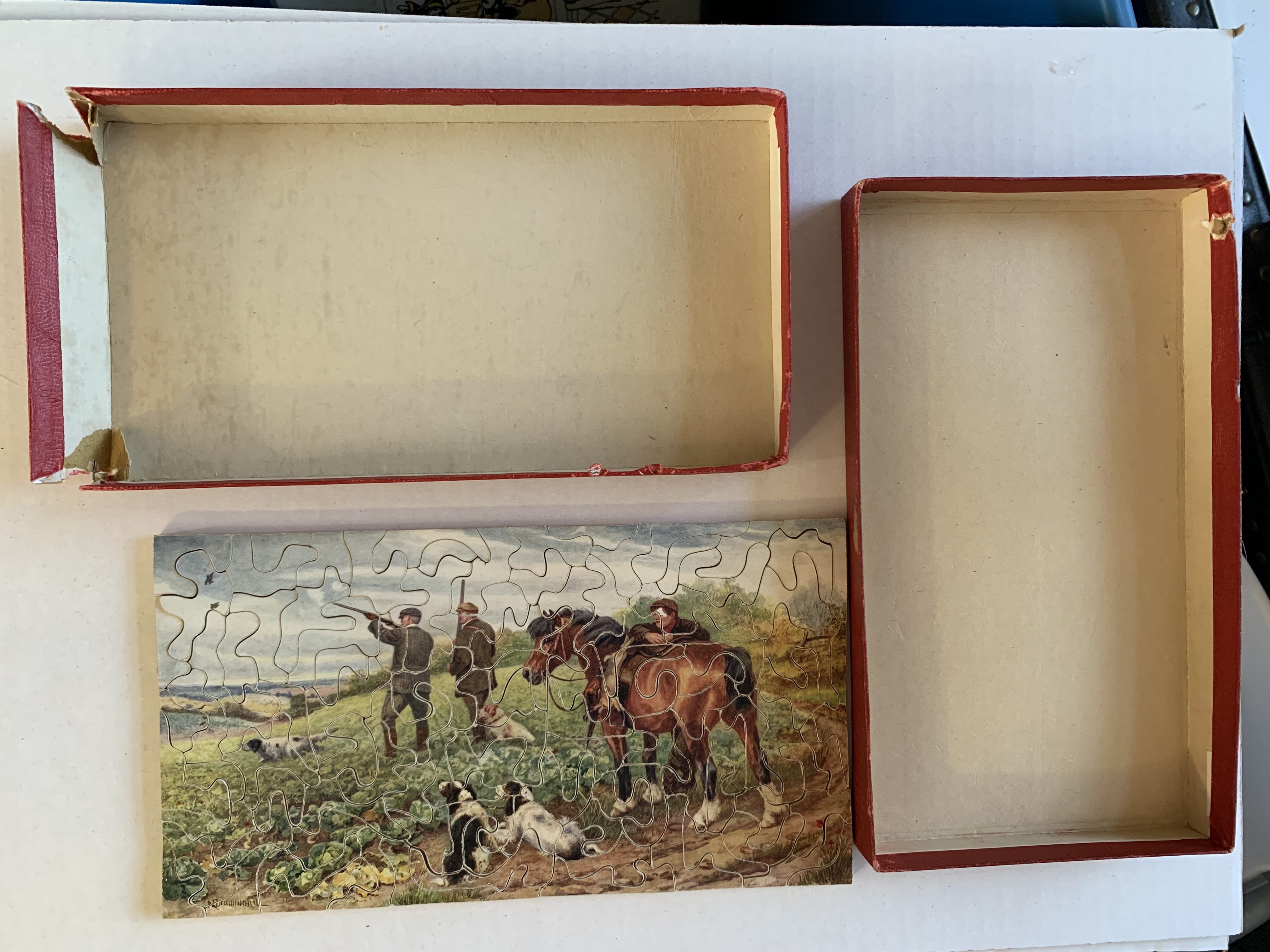 German edition, shooting scene dogs, horses, birds in air unable to read title on label,