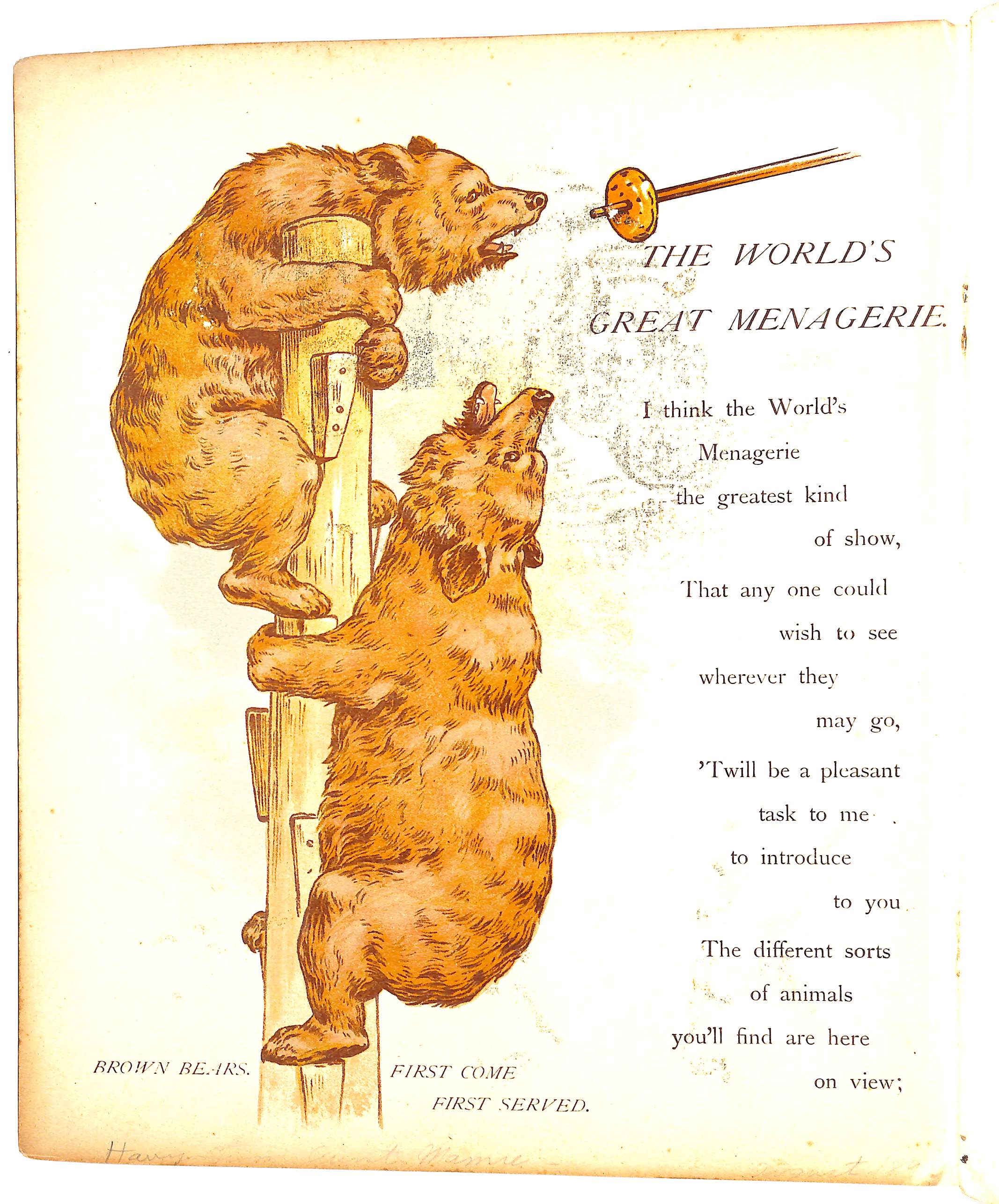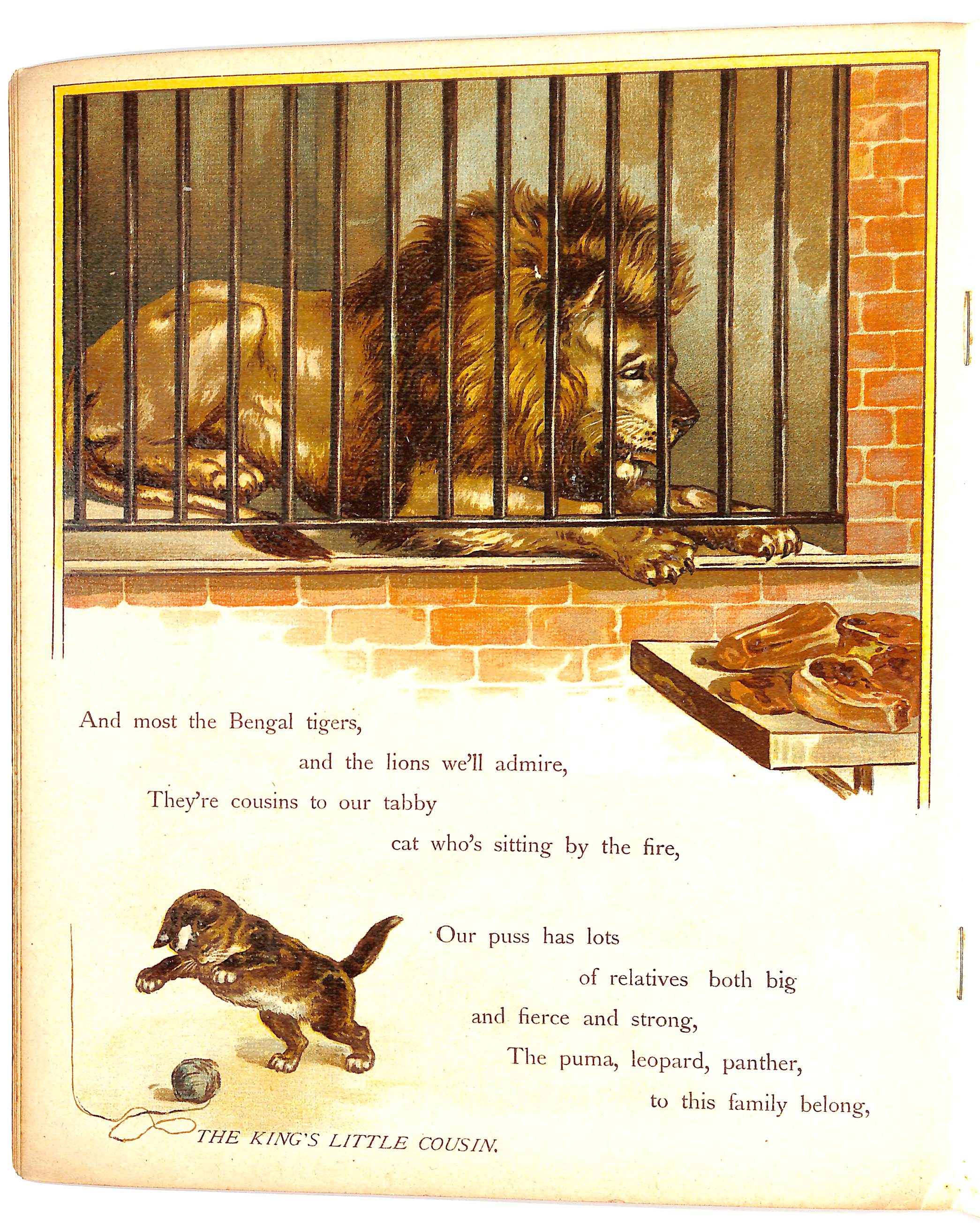 front cover image of male and female lions RAPHAEL TUCK & SONS, LONDON, PARIS, NEW YORK. PUBLISHERS TO HER MAJESTY THE QUEEN. DESIGNED AT THE STUDIOS IN ENGLAND AND PRINTED AT THE FINE ART WORKS IN SAXONY has a gift inscription for 1896