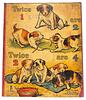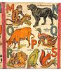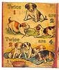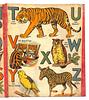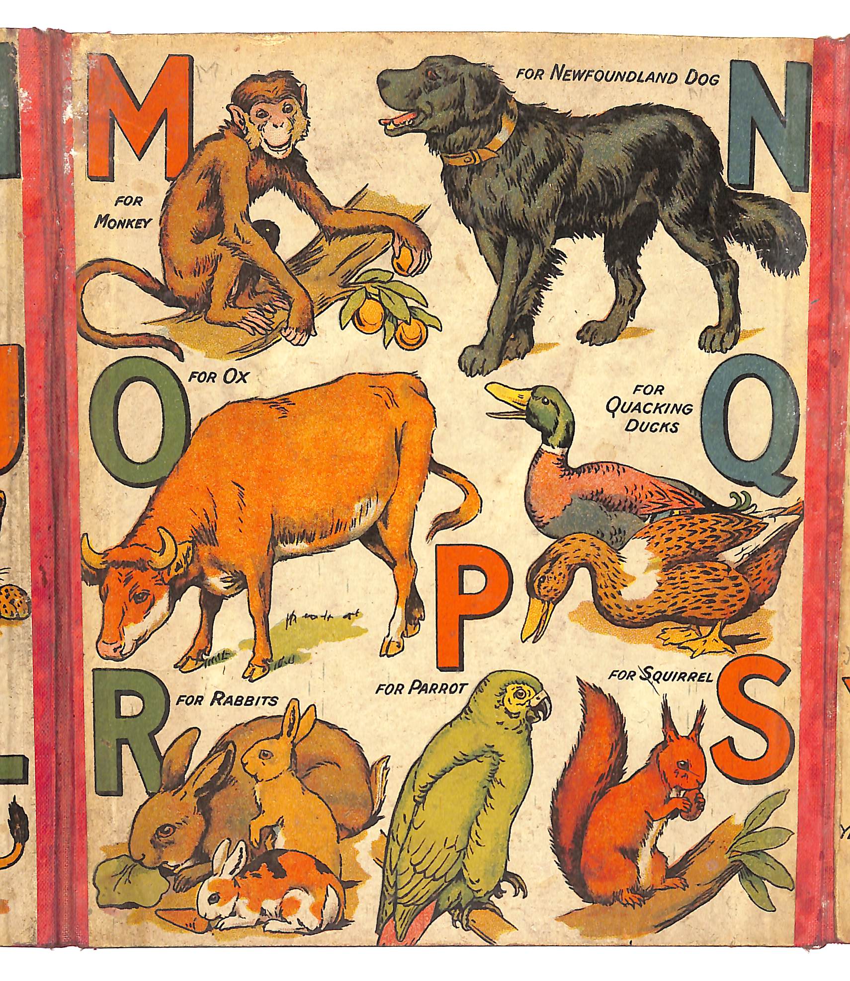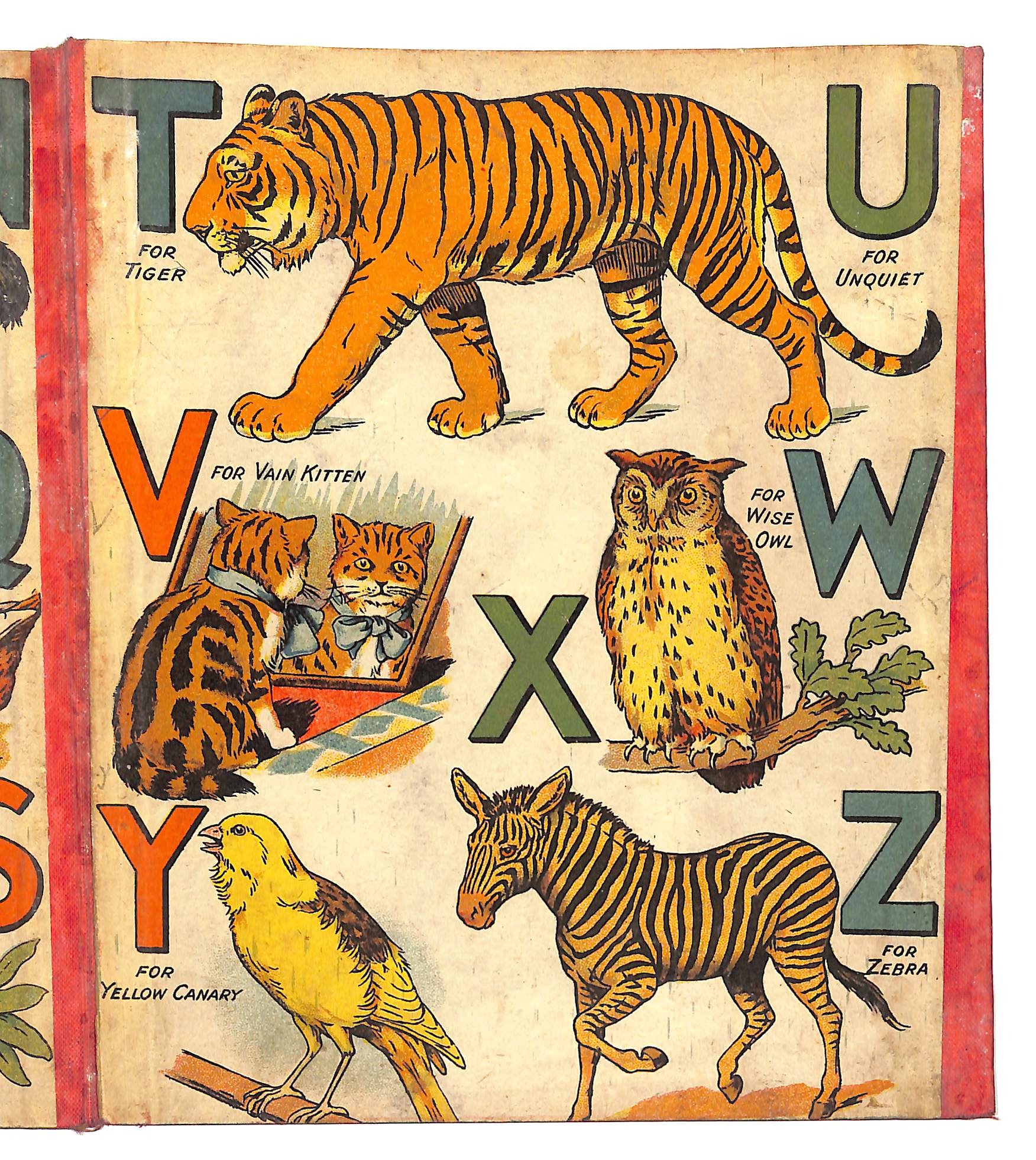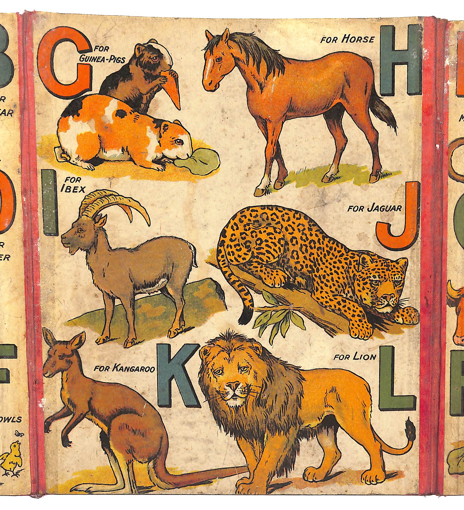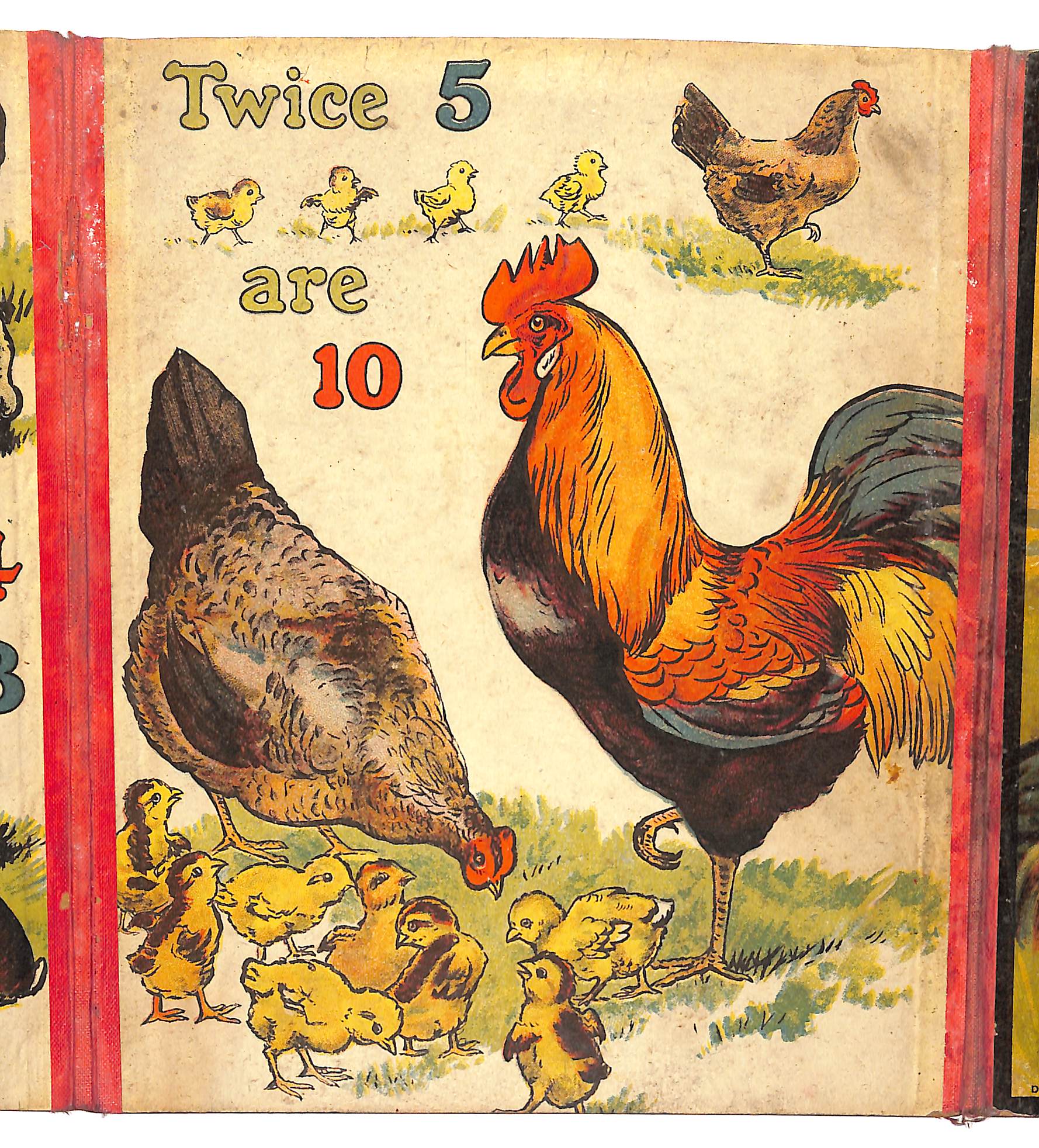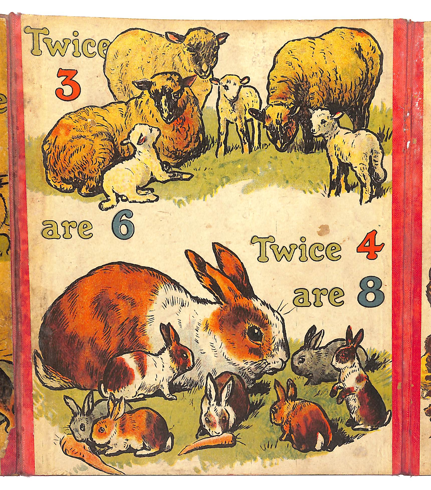foldout with red cloth hinge bindings, the illustrated alphabet on one side and math and counting skills on the other