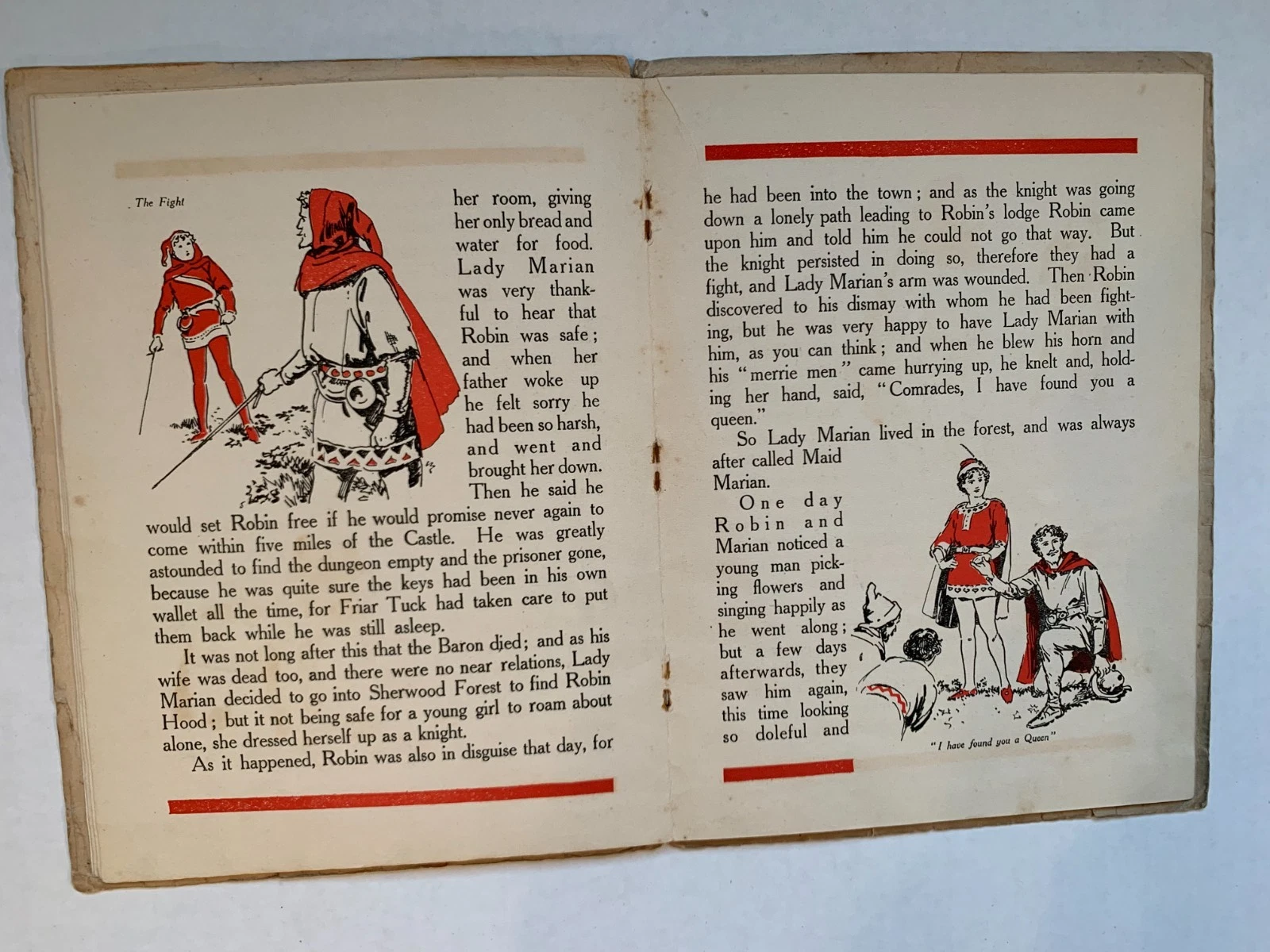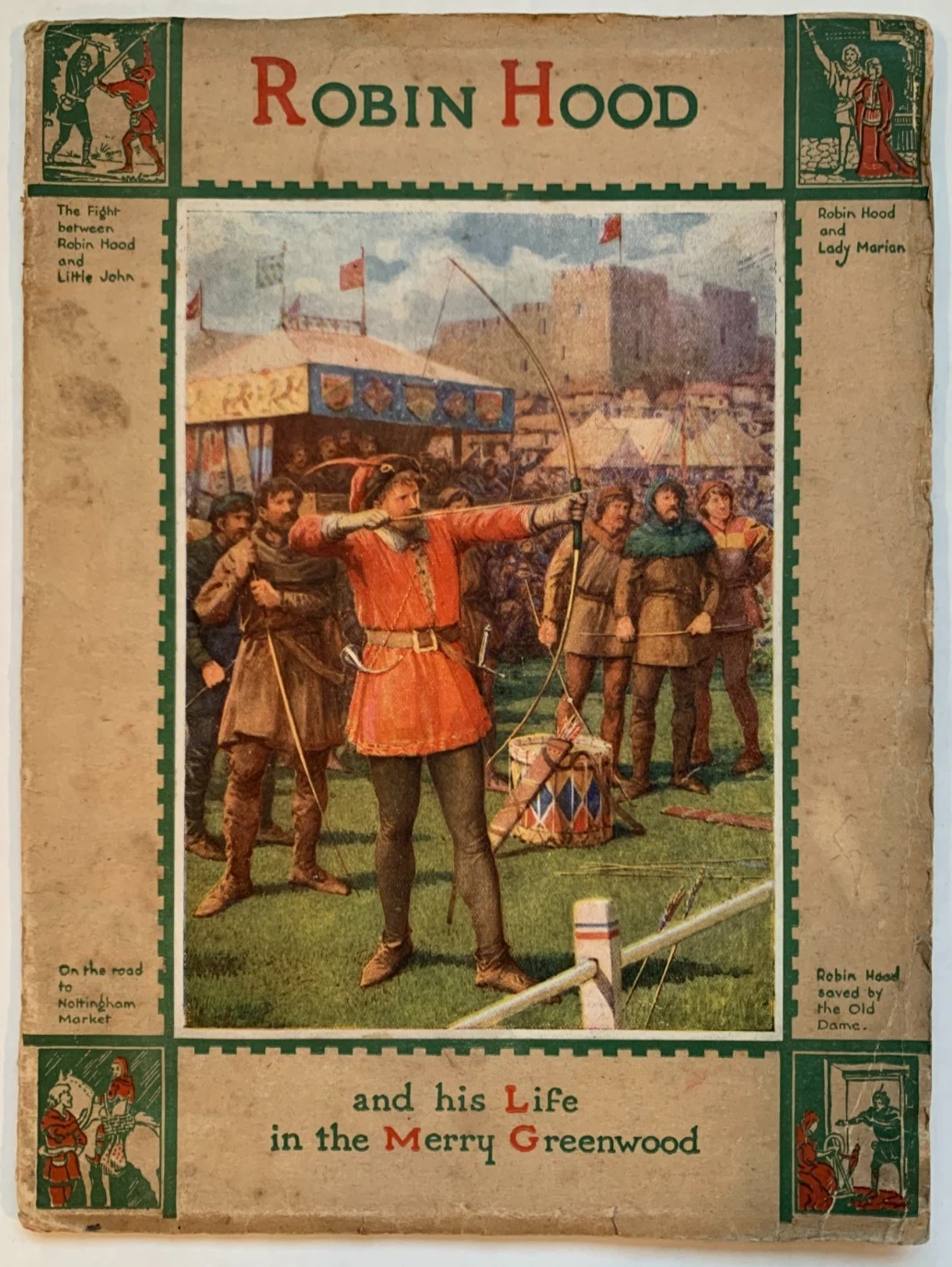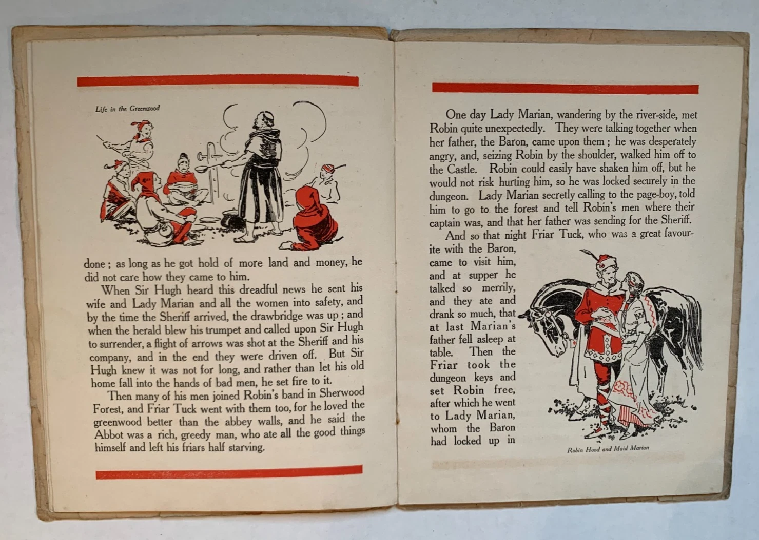 colour paste down to front cover in an elaborate design, frontispiece titled ROBIN HOOD MEETS THE BISHOP OF HEREFORD
