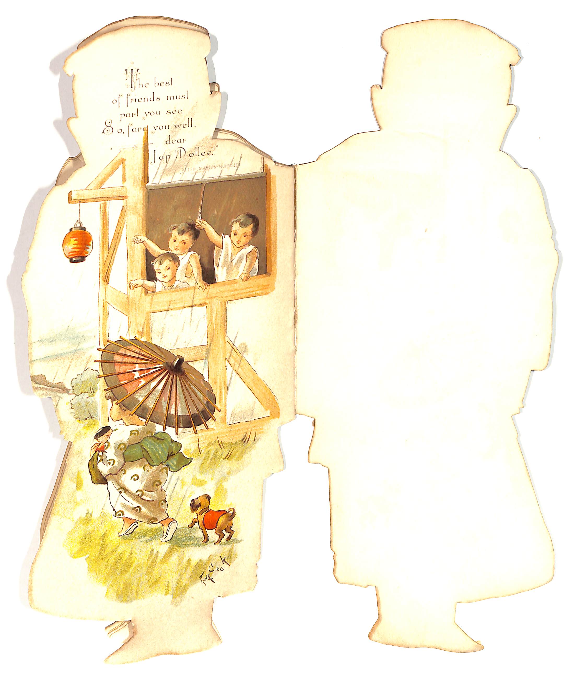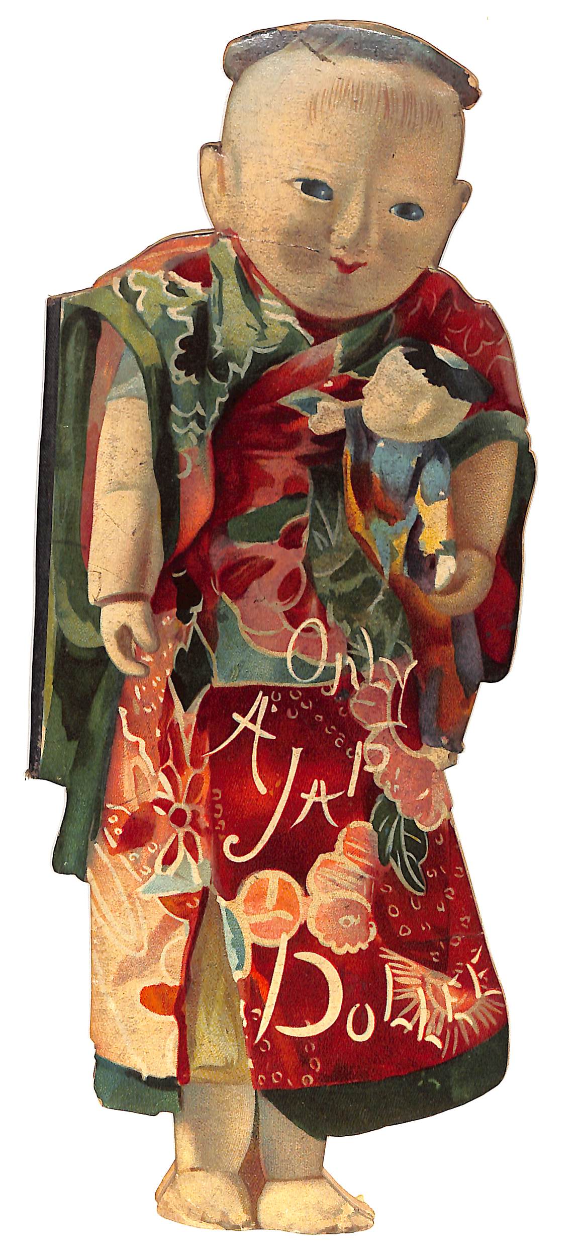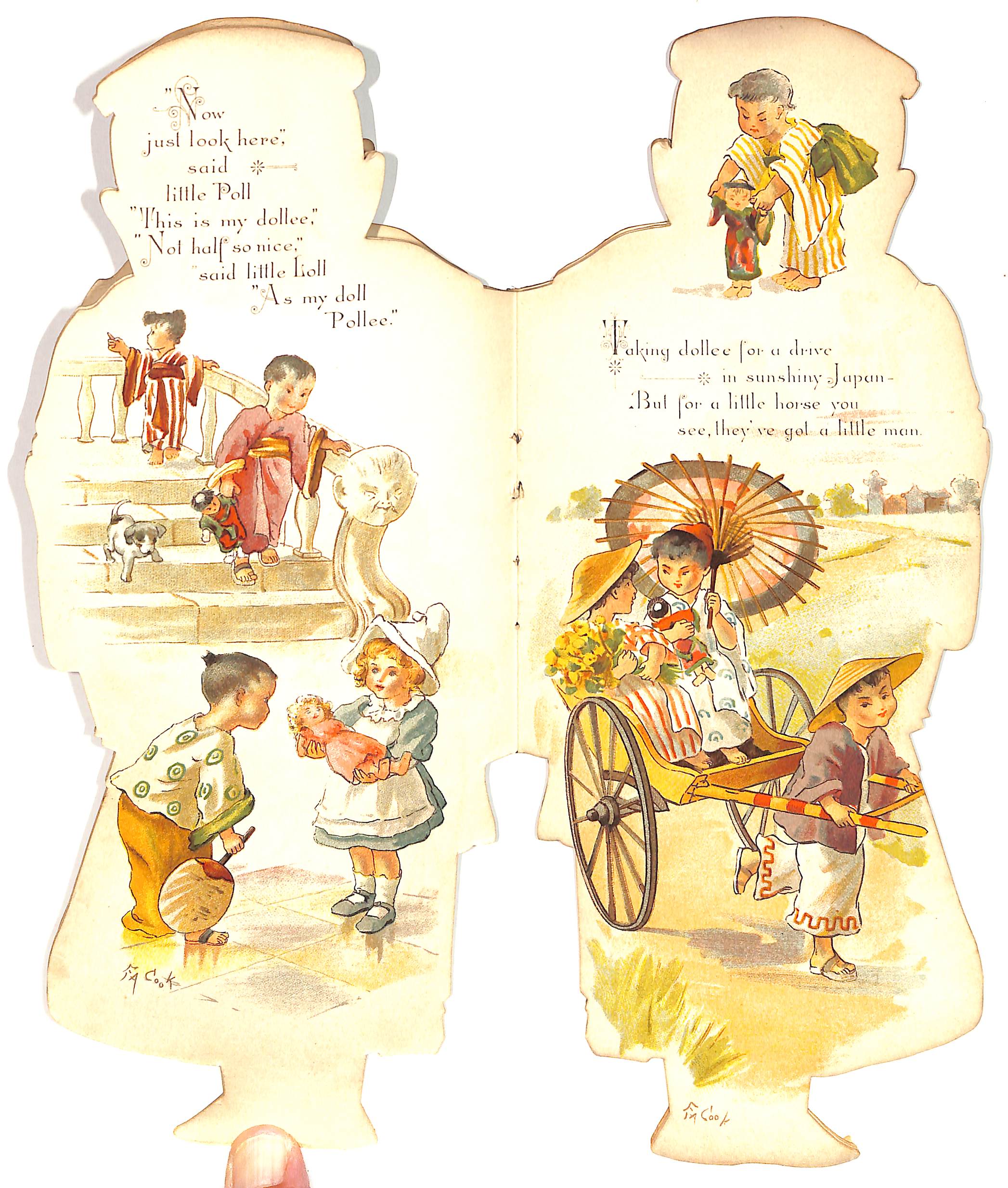 doll shaped book, cover image of a Japanese child holding a doll wonderful images of children at play