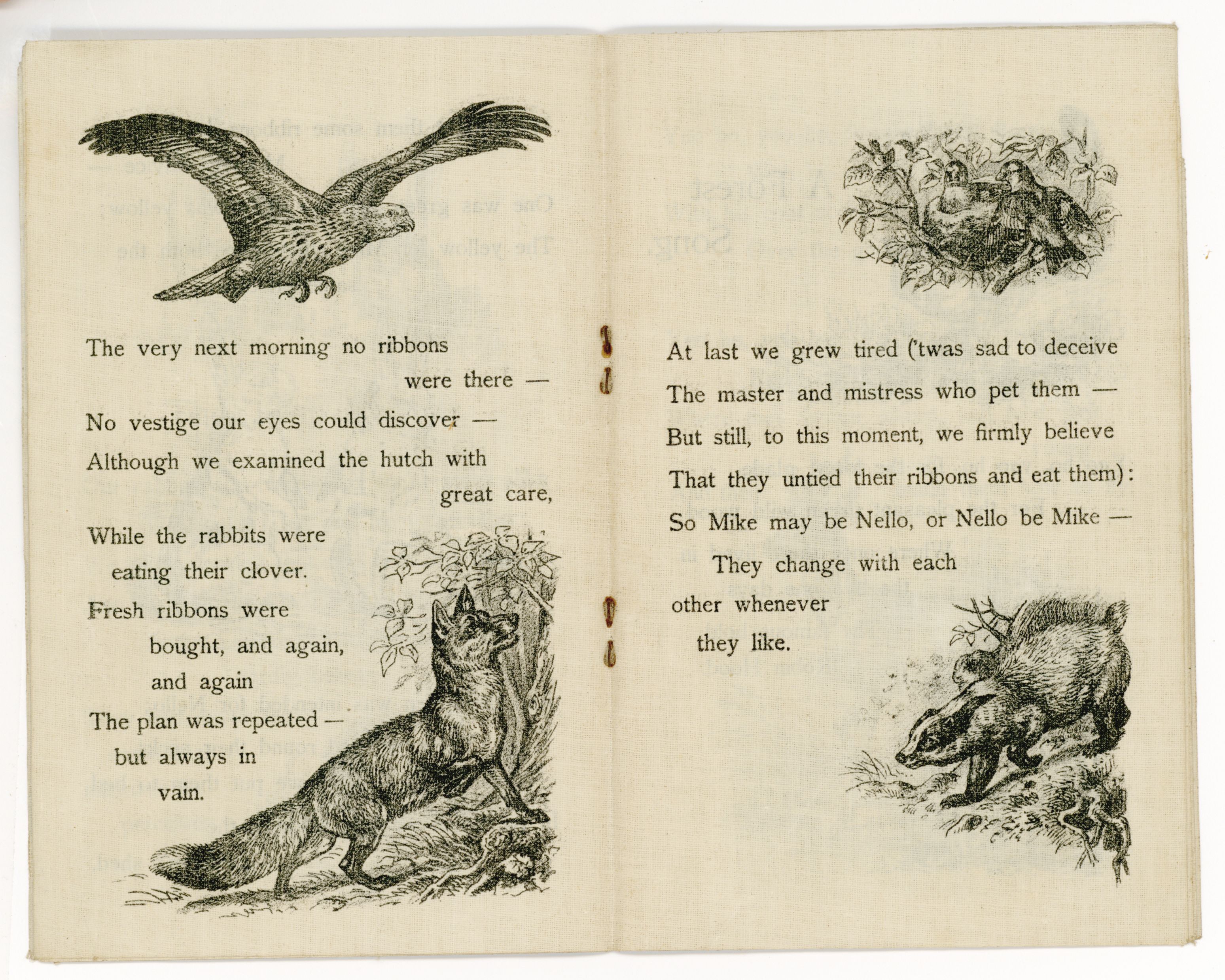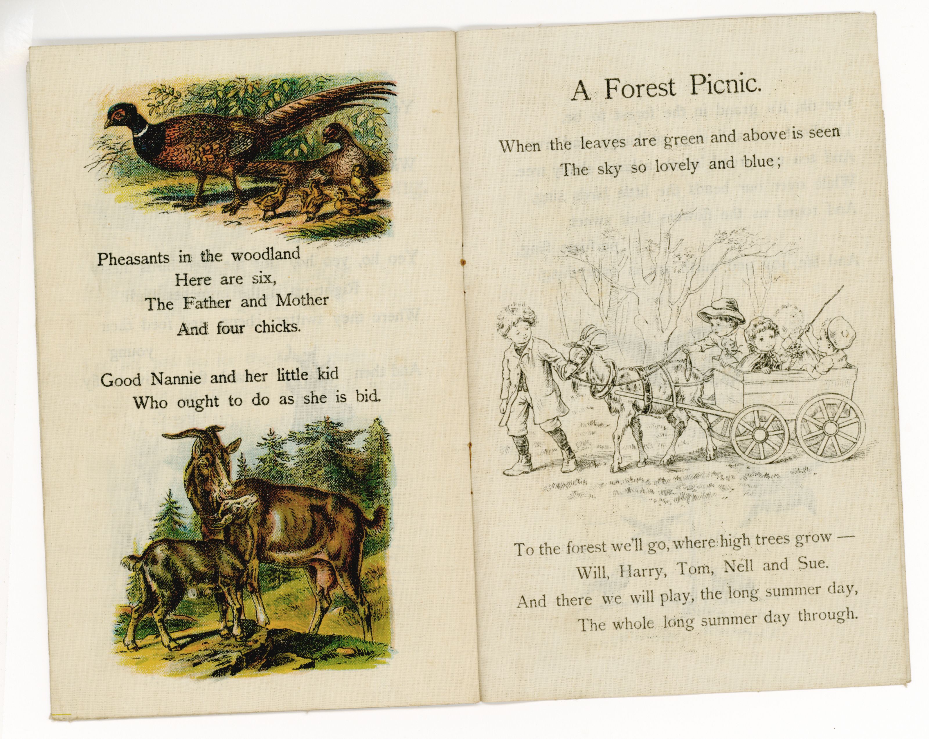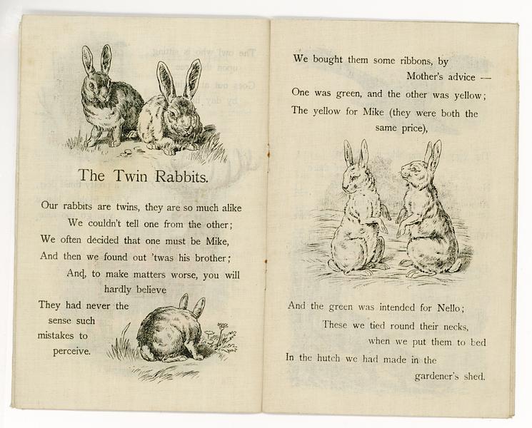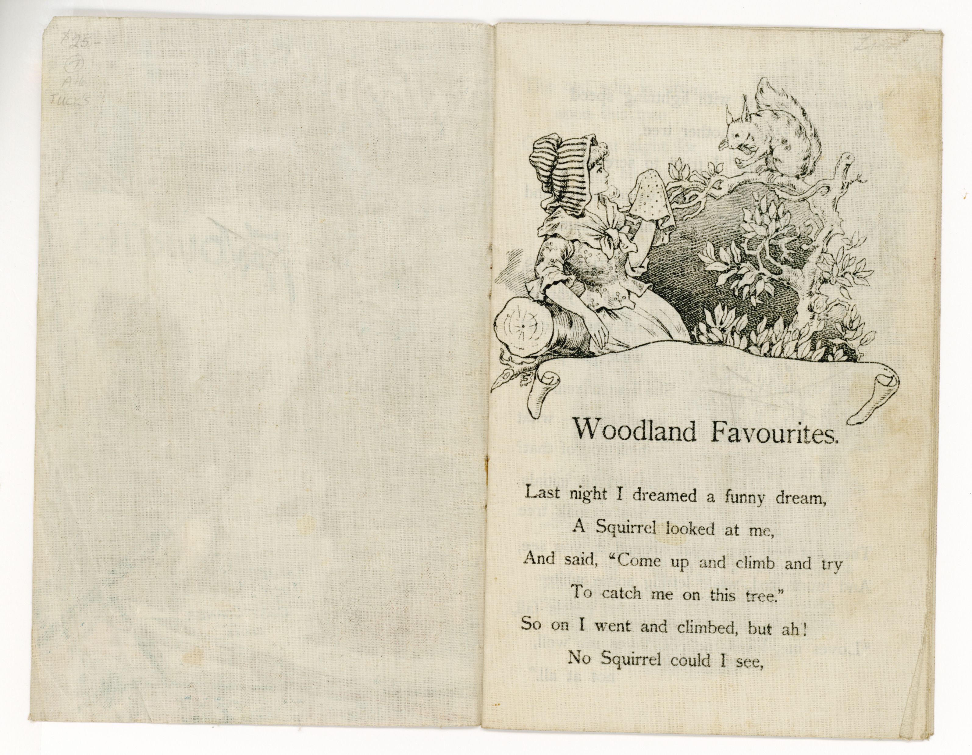 UNTEARABLE LINEN or not three squirrels back cover has image of boy in hat poems include WOODLAND FAVOURITES,TWO SQUIRRELS, THE TWIN RABBITS, A FOREST SONG, A FOREST PICNIC,