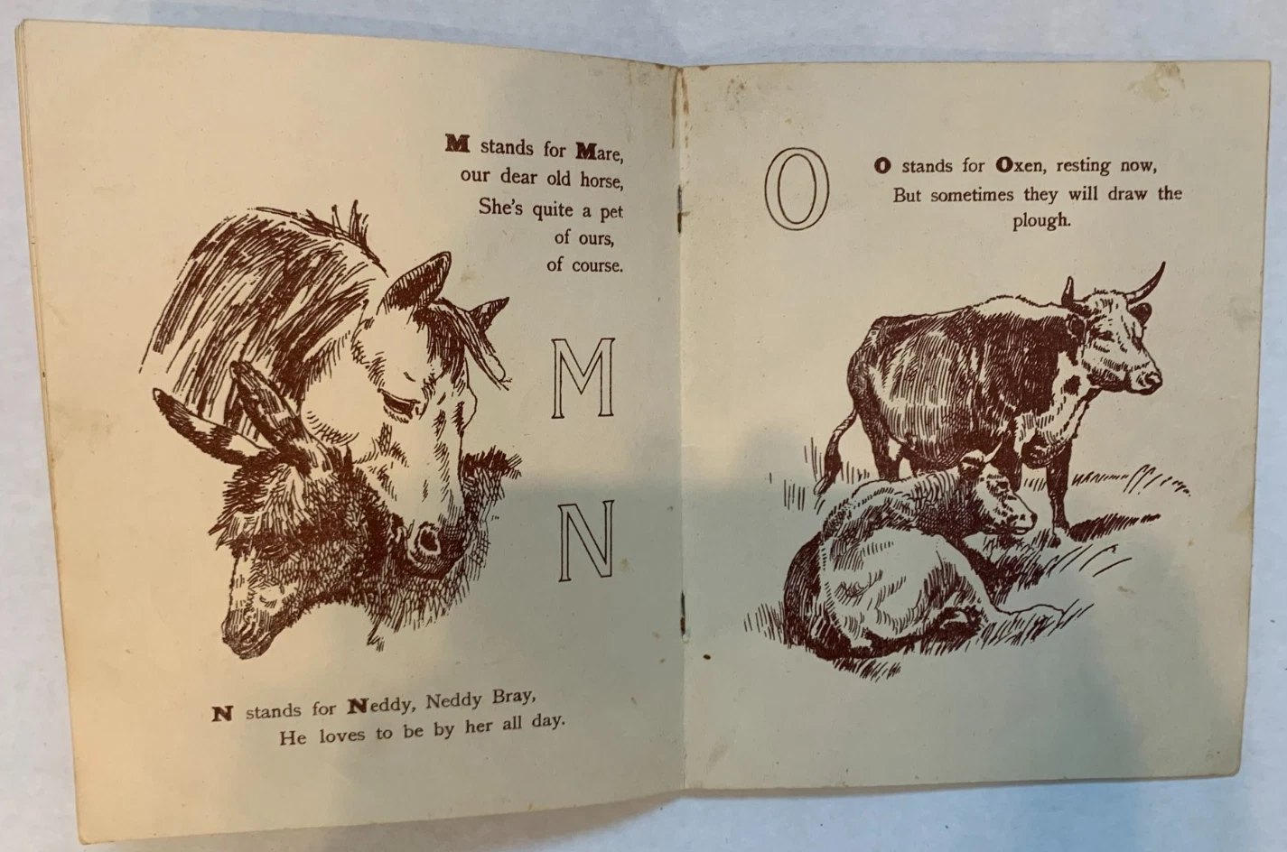 12 pages young child sits and holds book for pig to look at