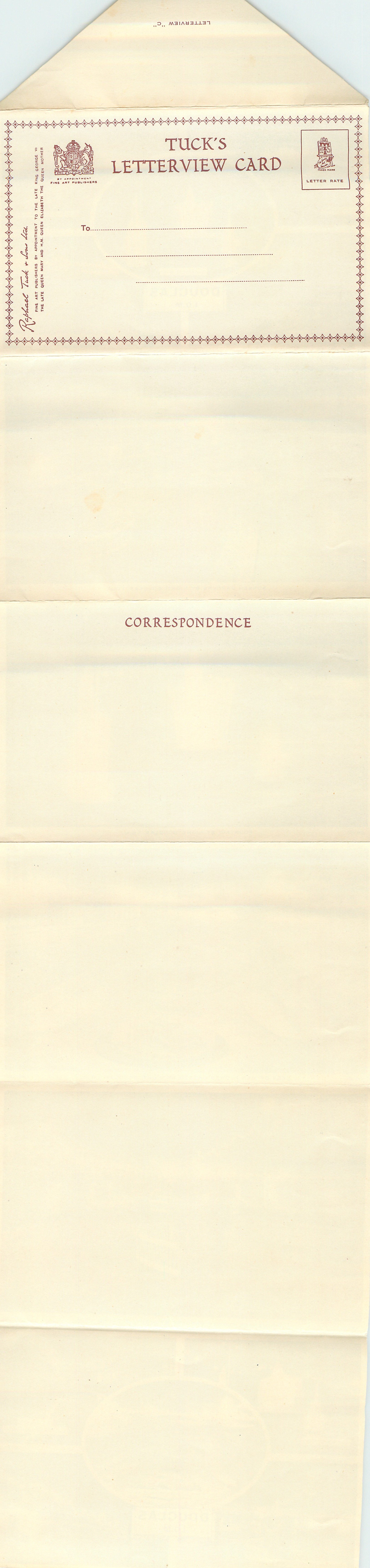 CORRESPONDENCE, fold out stationary with space on the back to write a letter and six views on the front. Folds concertina style into an envelope for posting.
