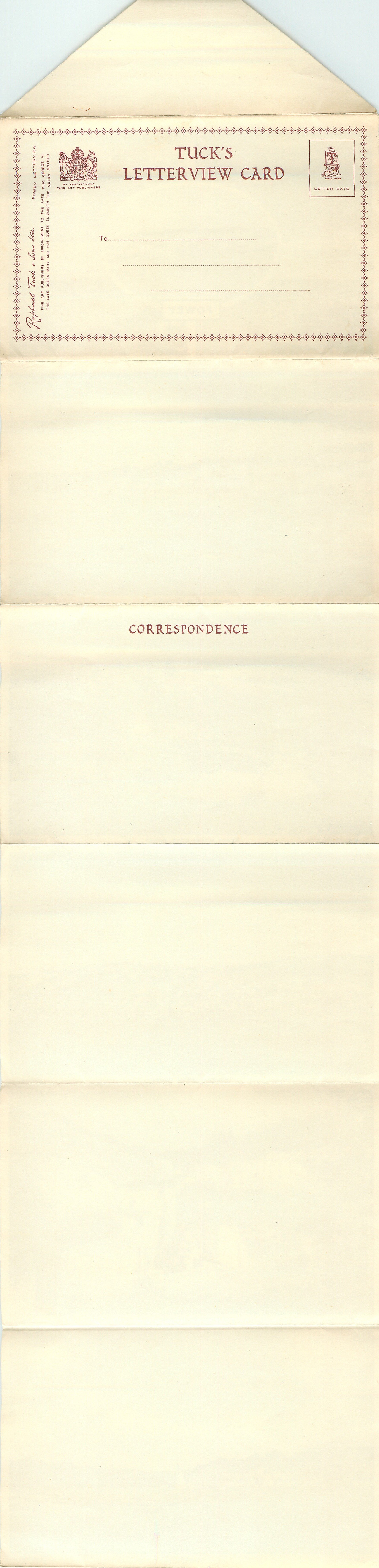 CORRESPONDENCE, fold out stationary with space on the back to write a letter and six views on the front. Folds concertina style into an envelope for posting.